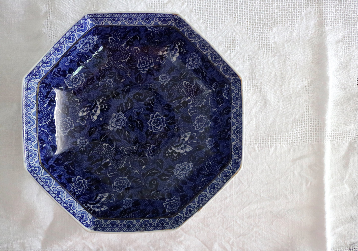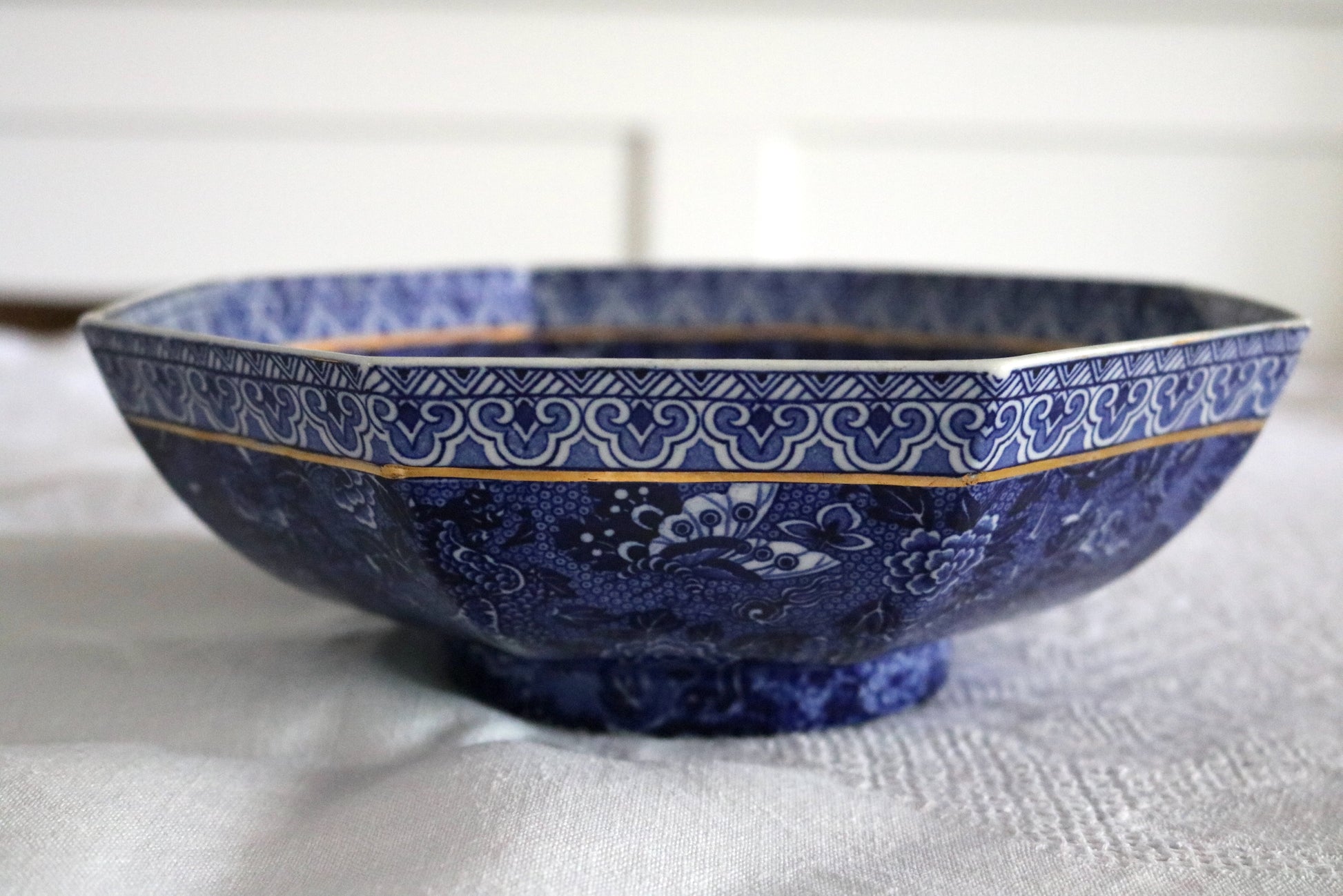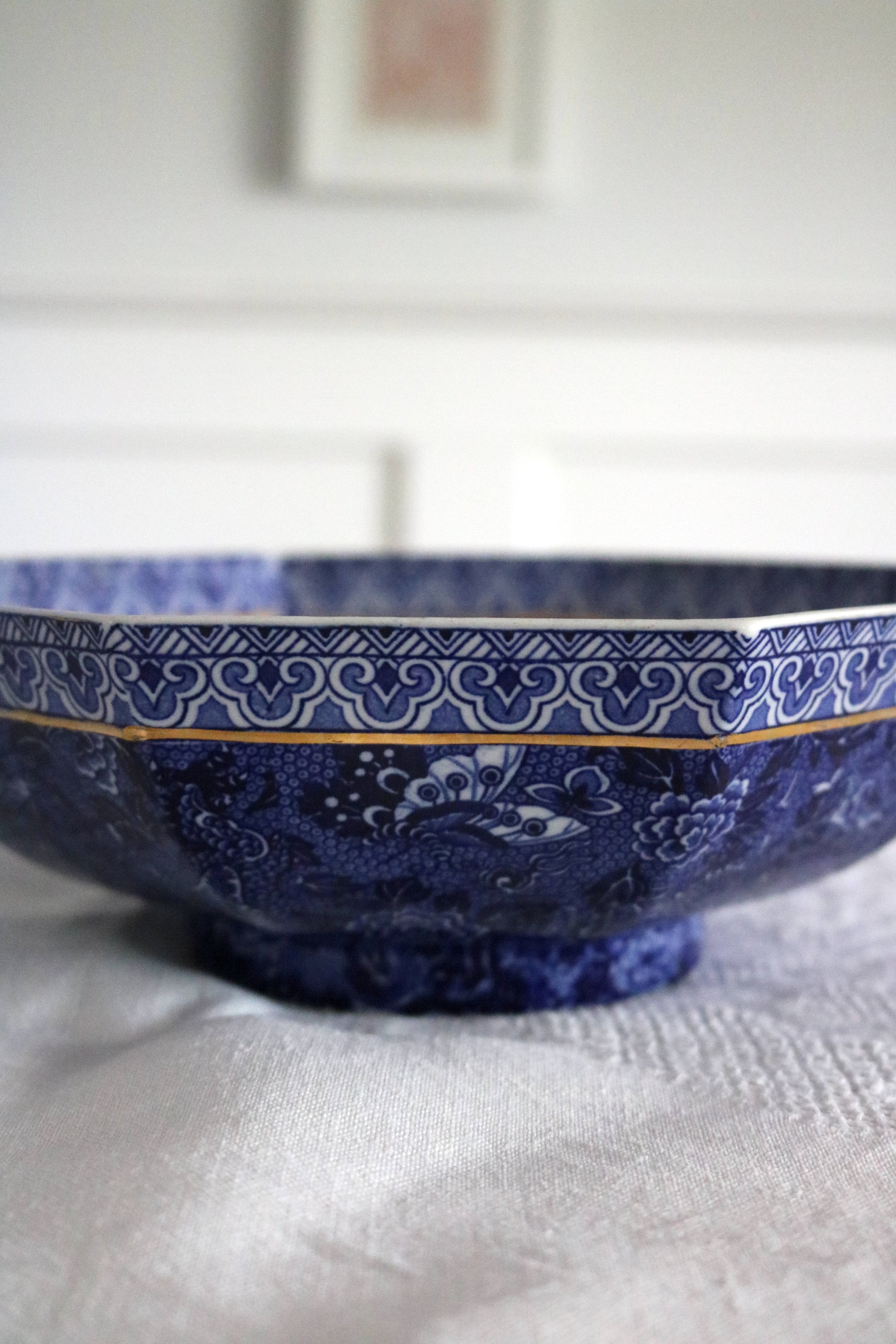A beautiful English blue and white floral 'chintz' pattern Shelley octagonal shape bowl.