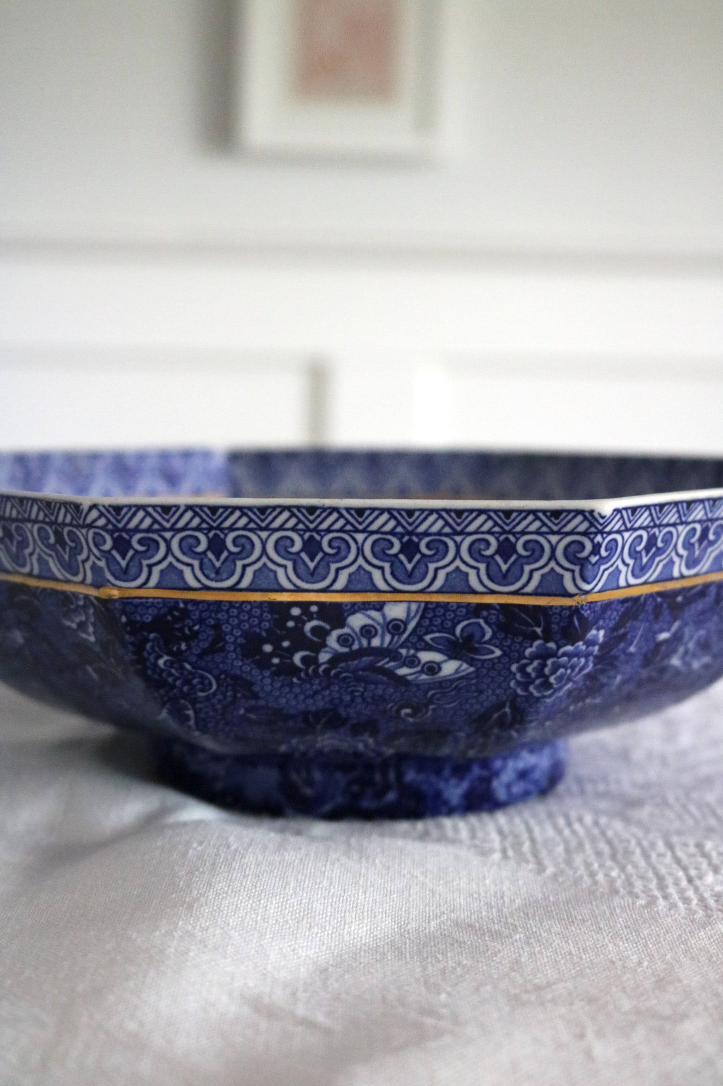 antique English Shelley blue chintz "Dragon" bowl