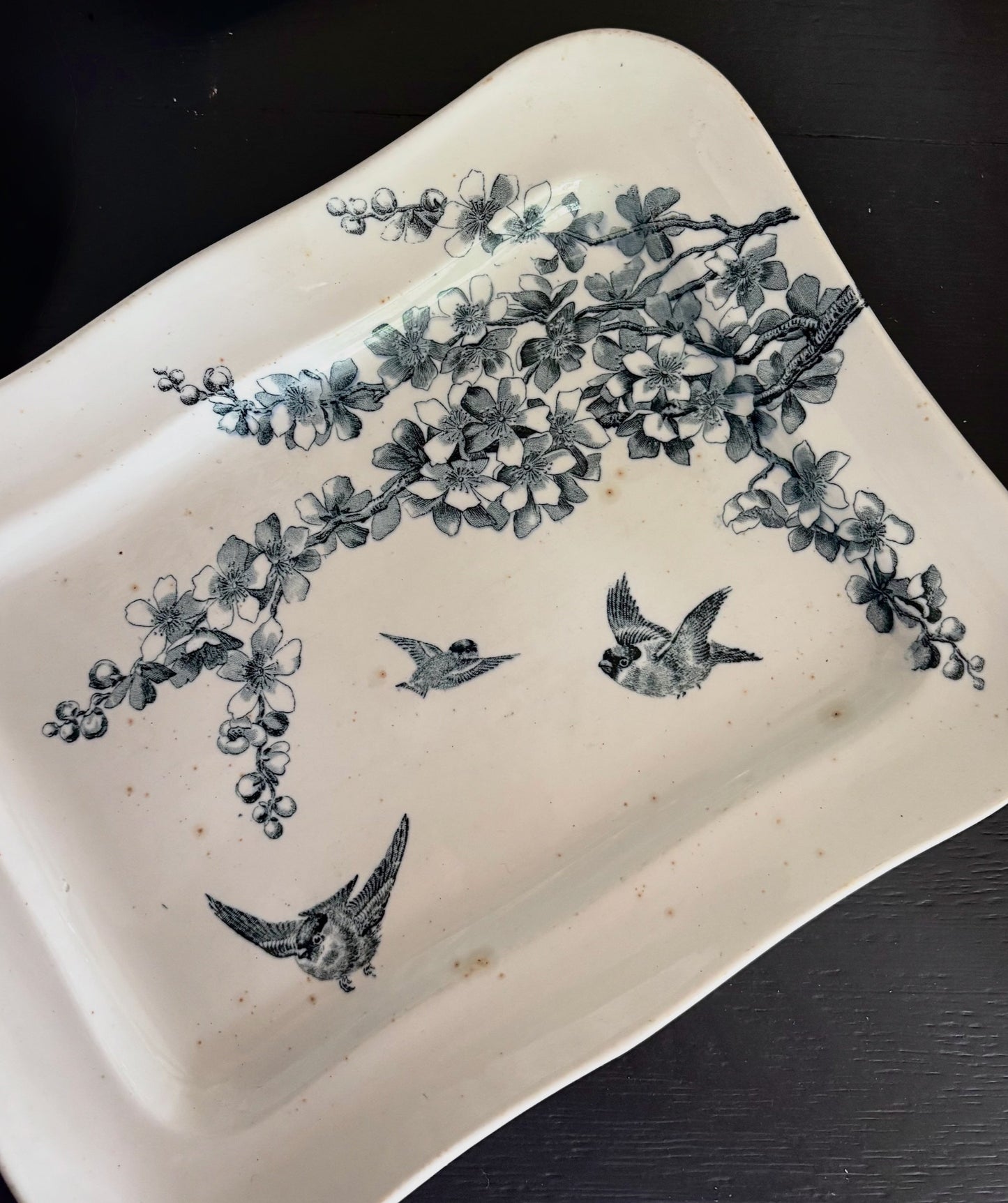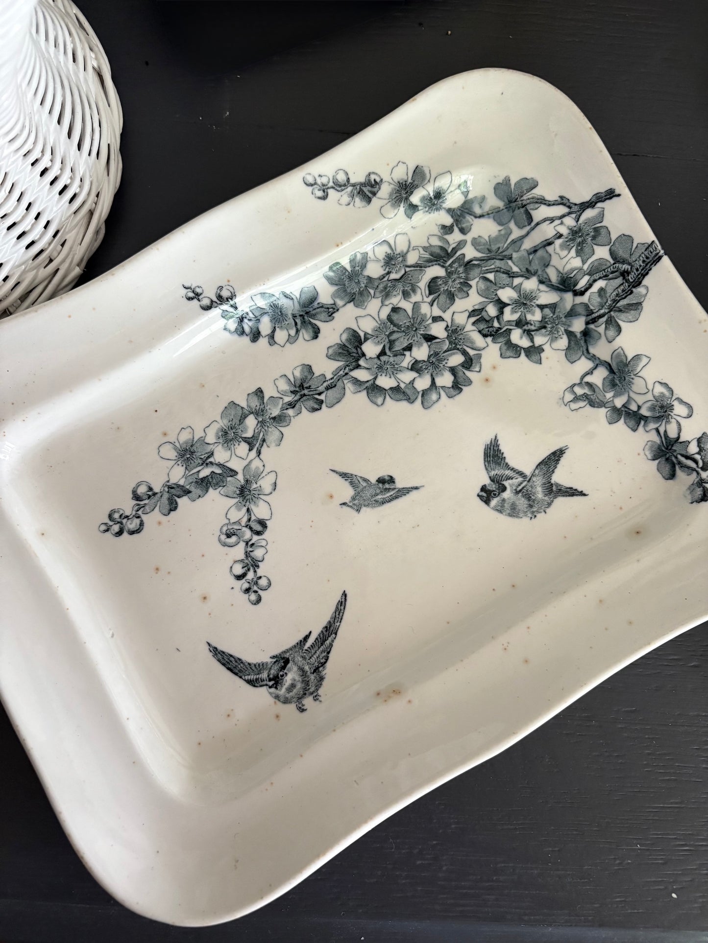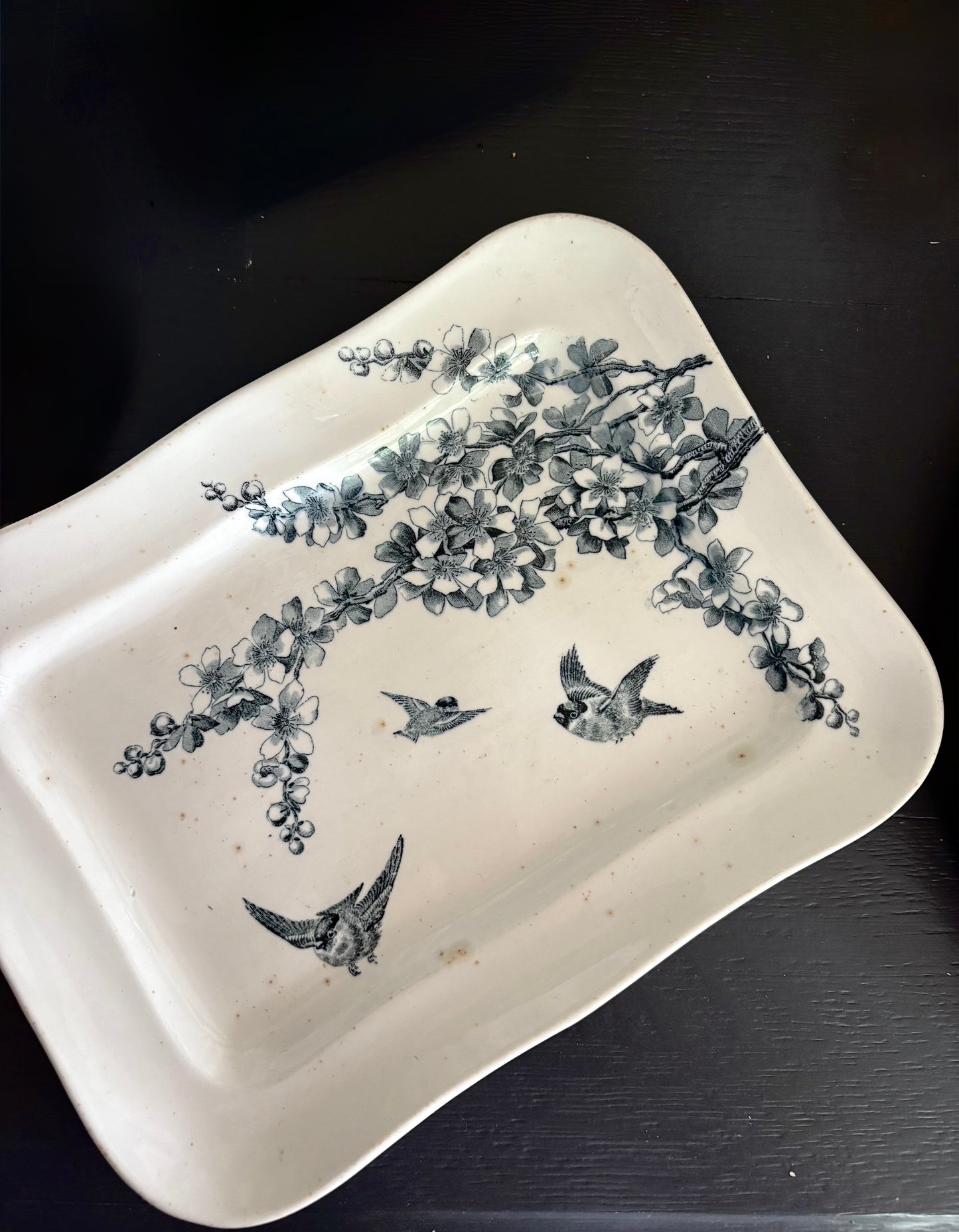 antique English transferware ironstone platter 'Birds & Blooms' George Jones & Sons