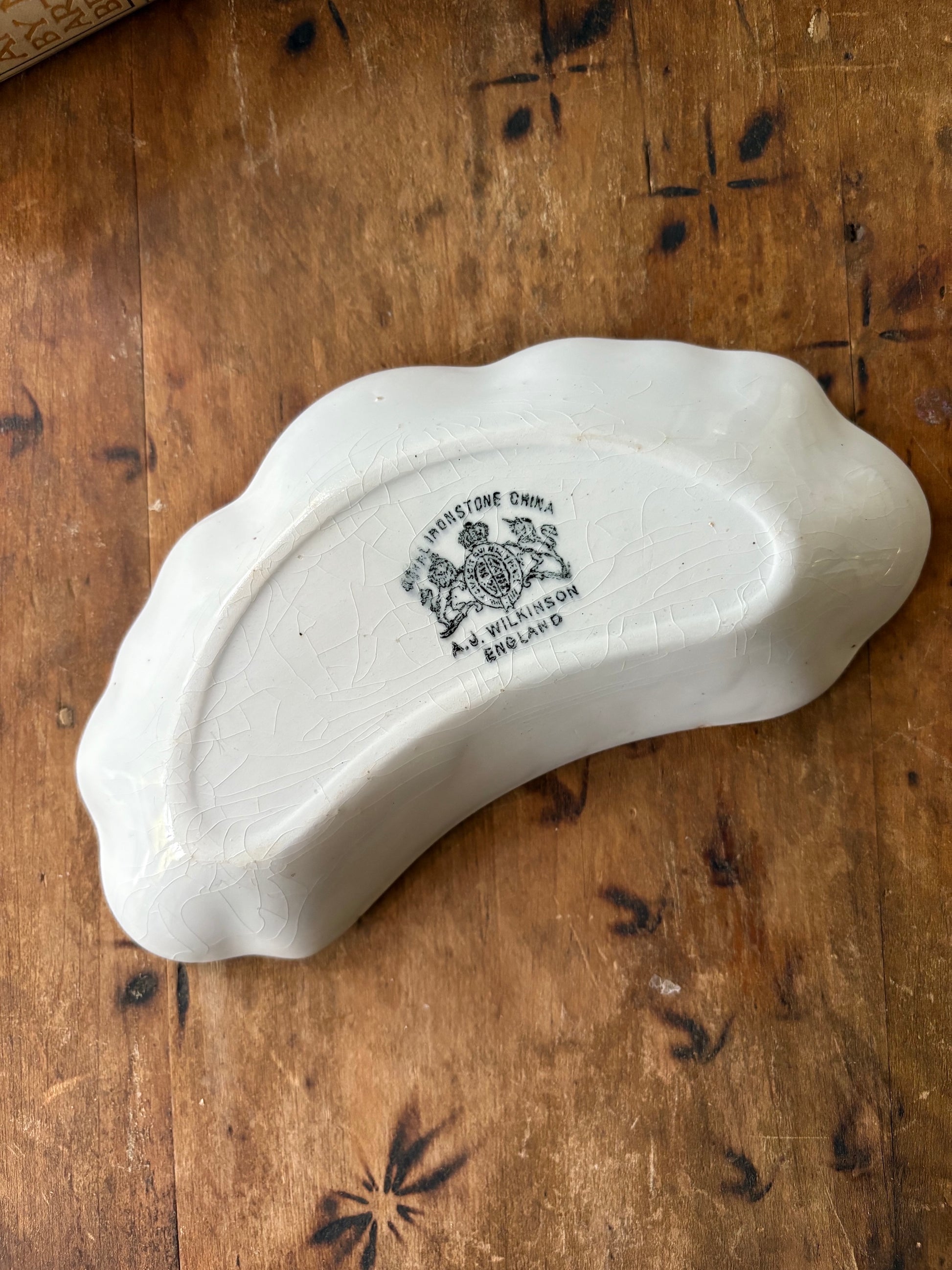 brown transferware crescent shaped dish Royal Ironstone China 'AJ Wilkinson'