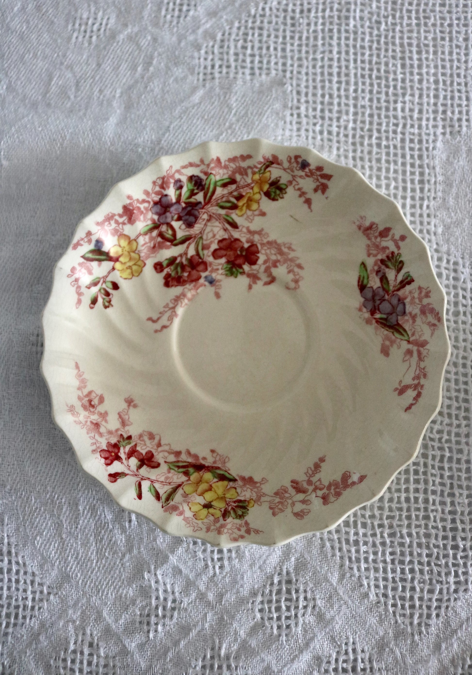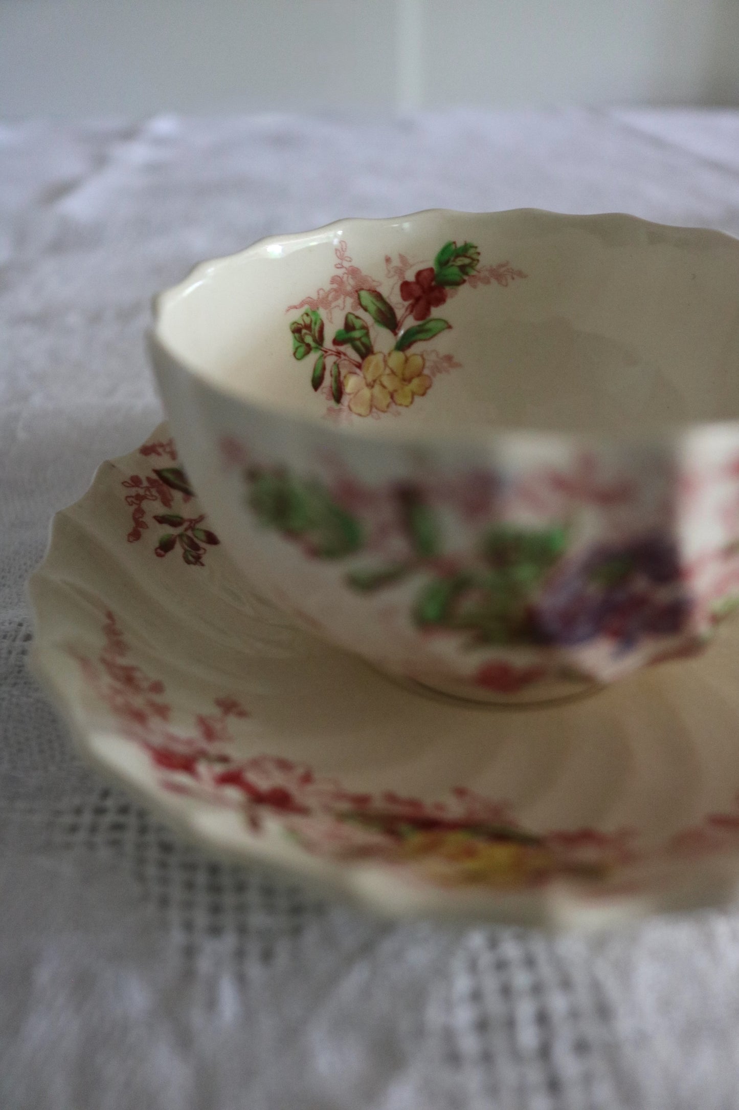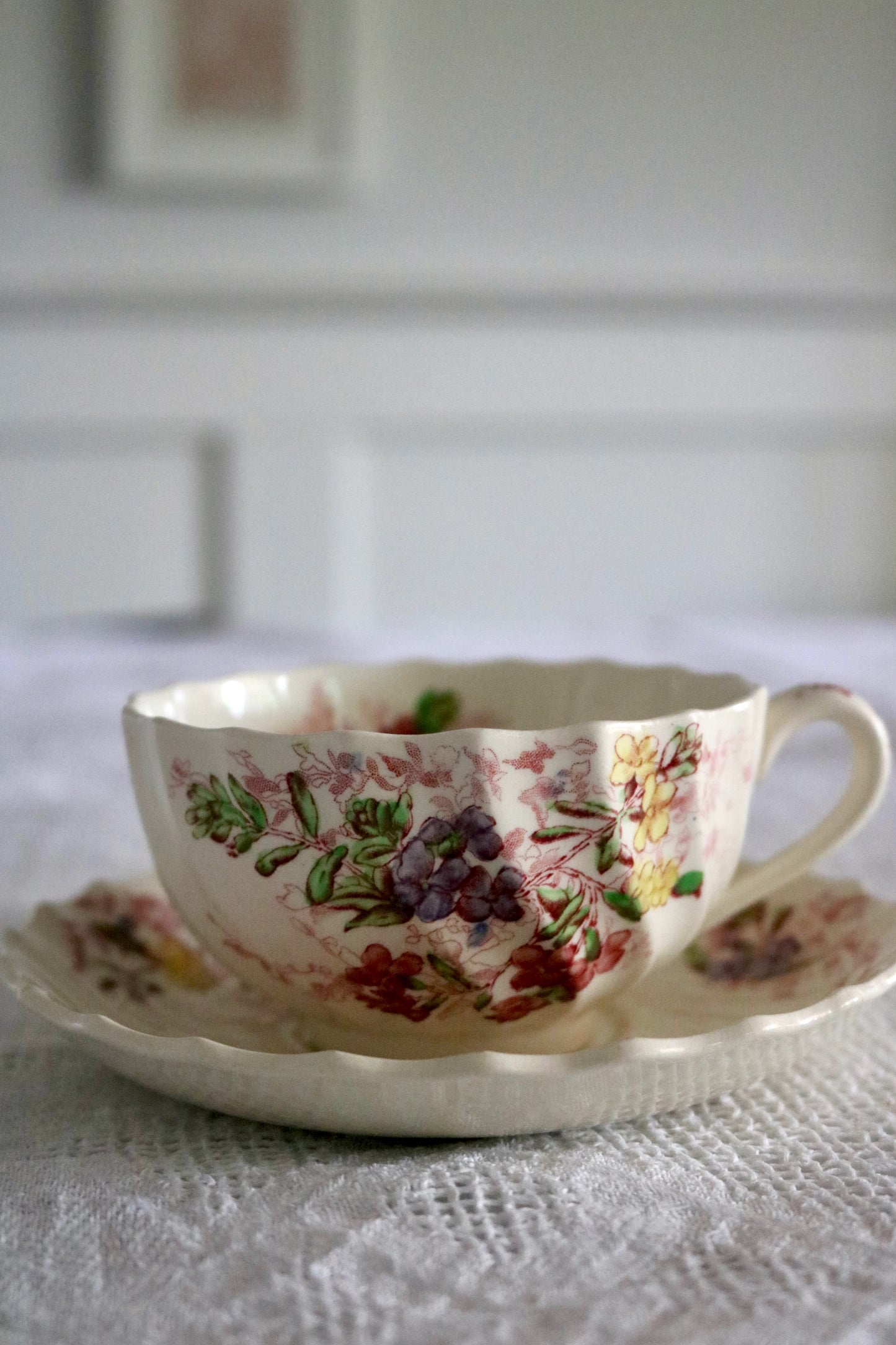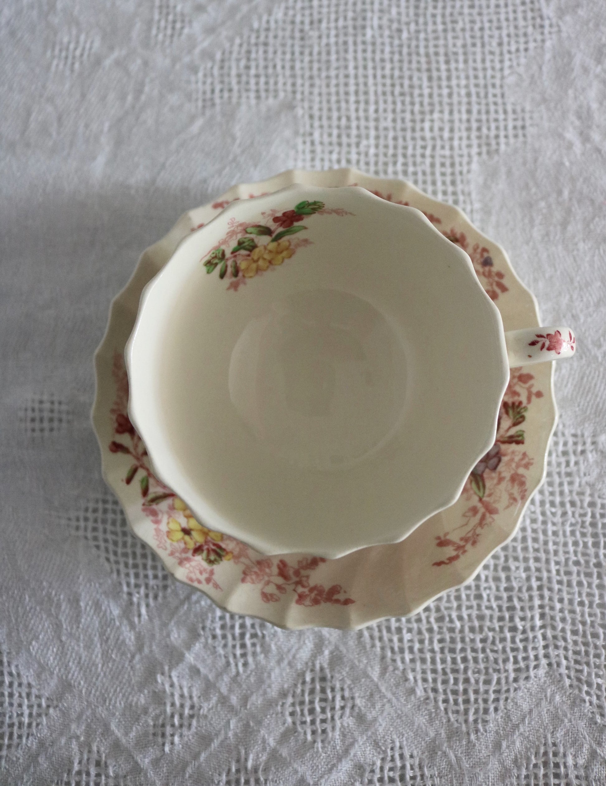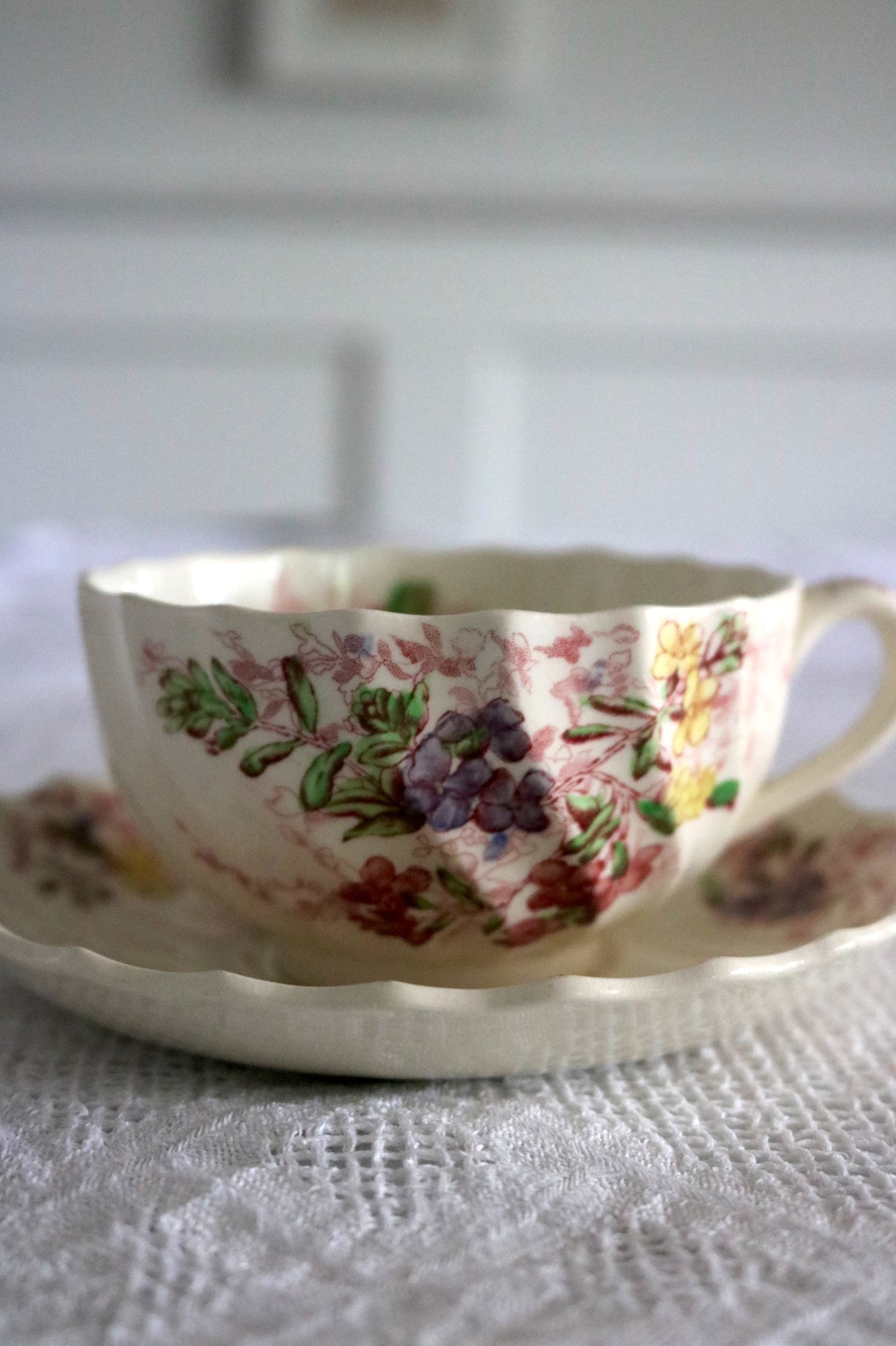 A pretty English Copeland Spode 'Fairy Dell' floral pattern cup and saucer. Scalloped rim.