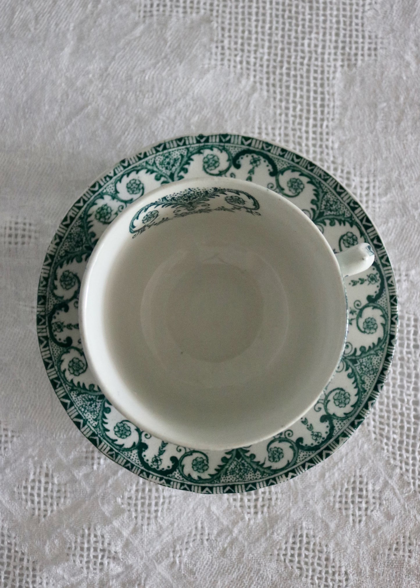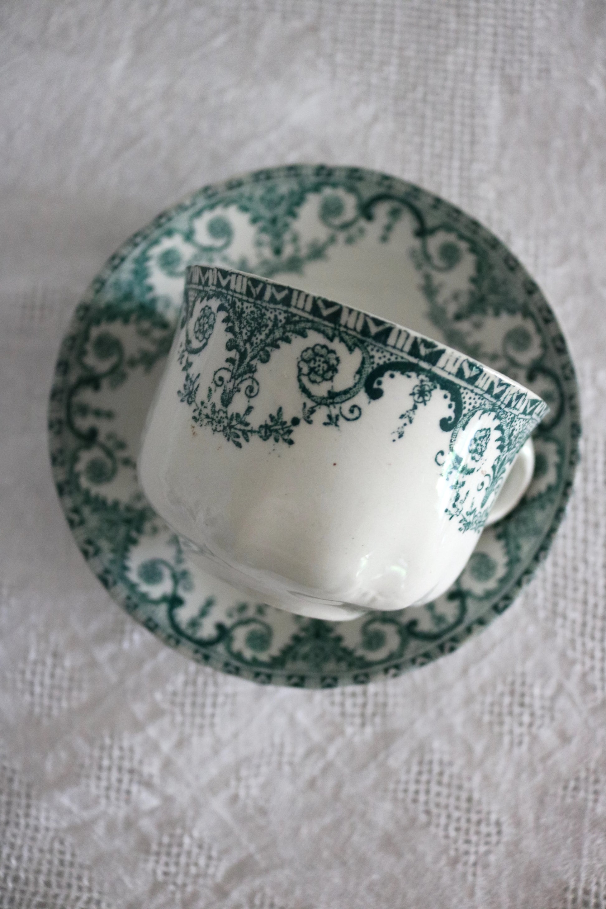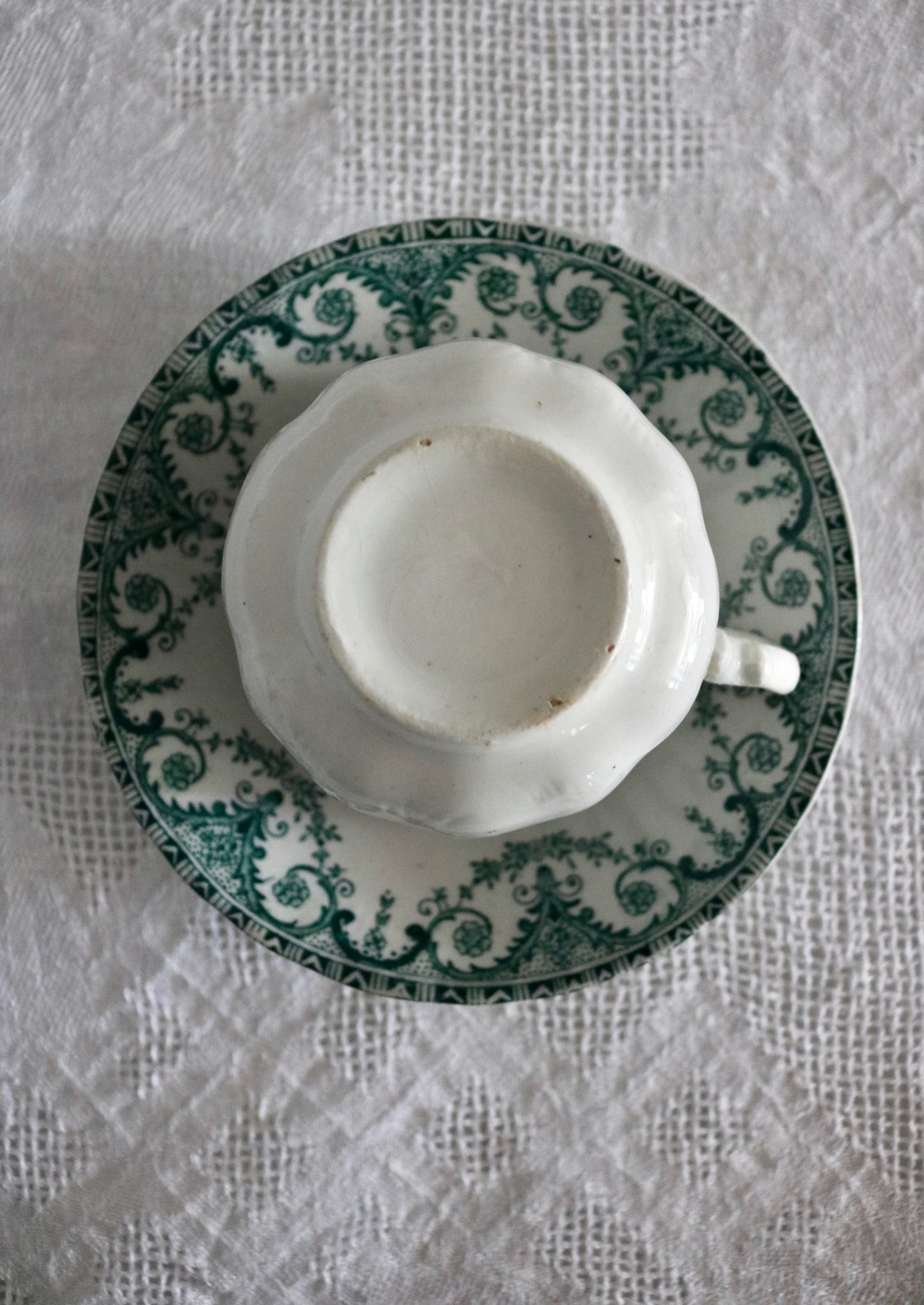 As found, in excellent vintage condition. The three spots on the saucer or a result of the original firing process where the saucer was placed instils inside the kiln.