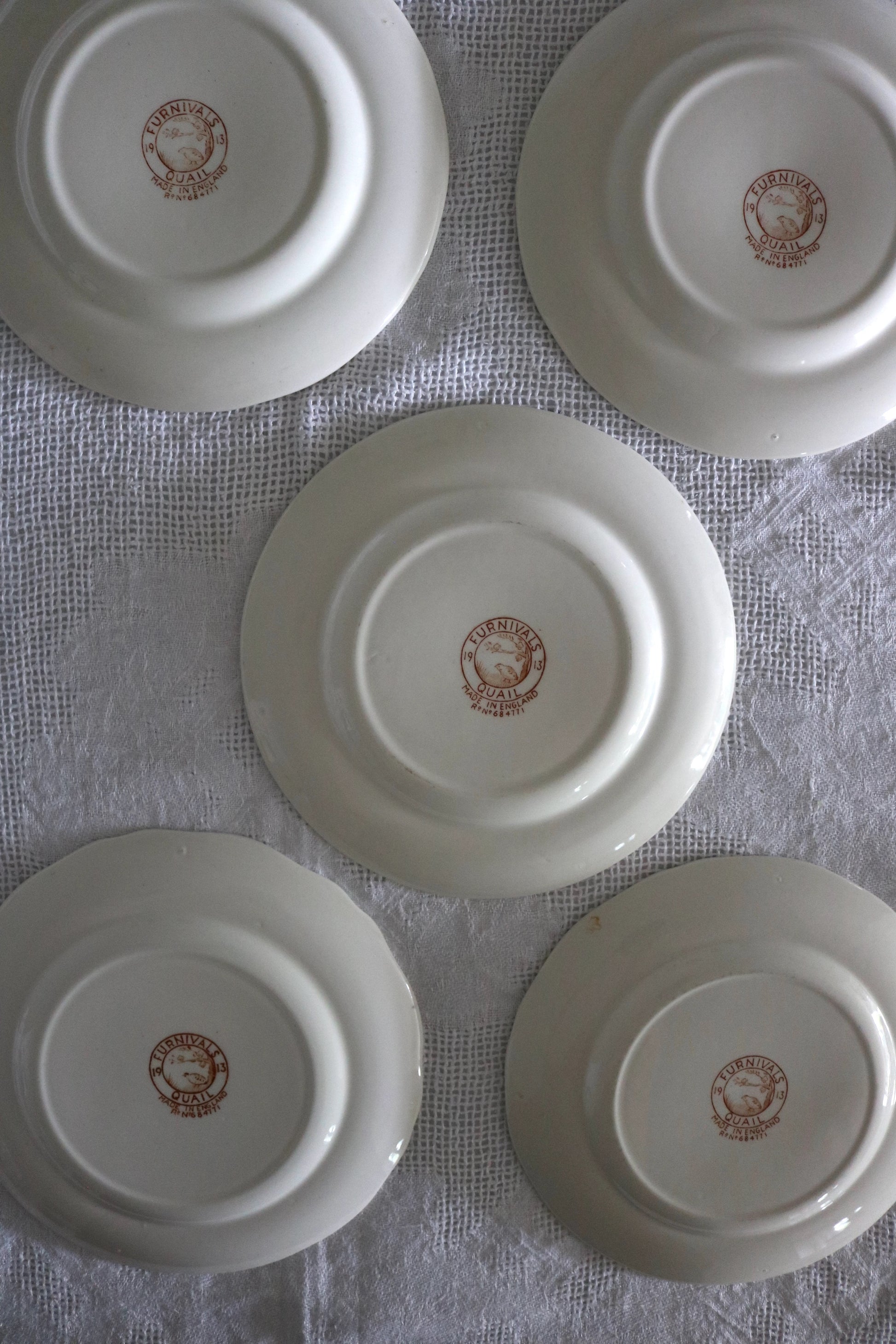 antique brown transferware plates 'Furnivals Quail'- set of 5