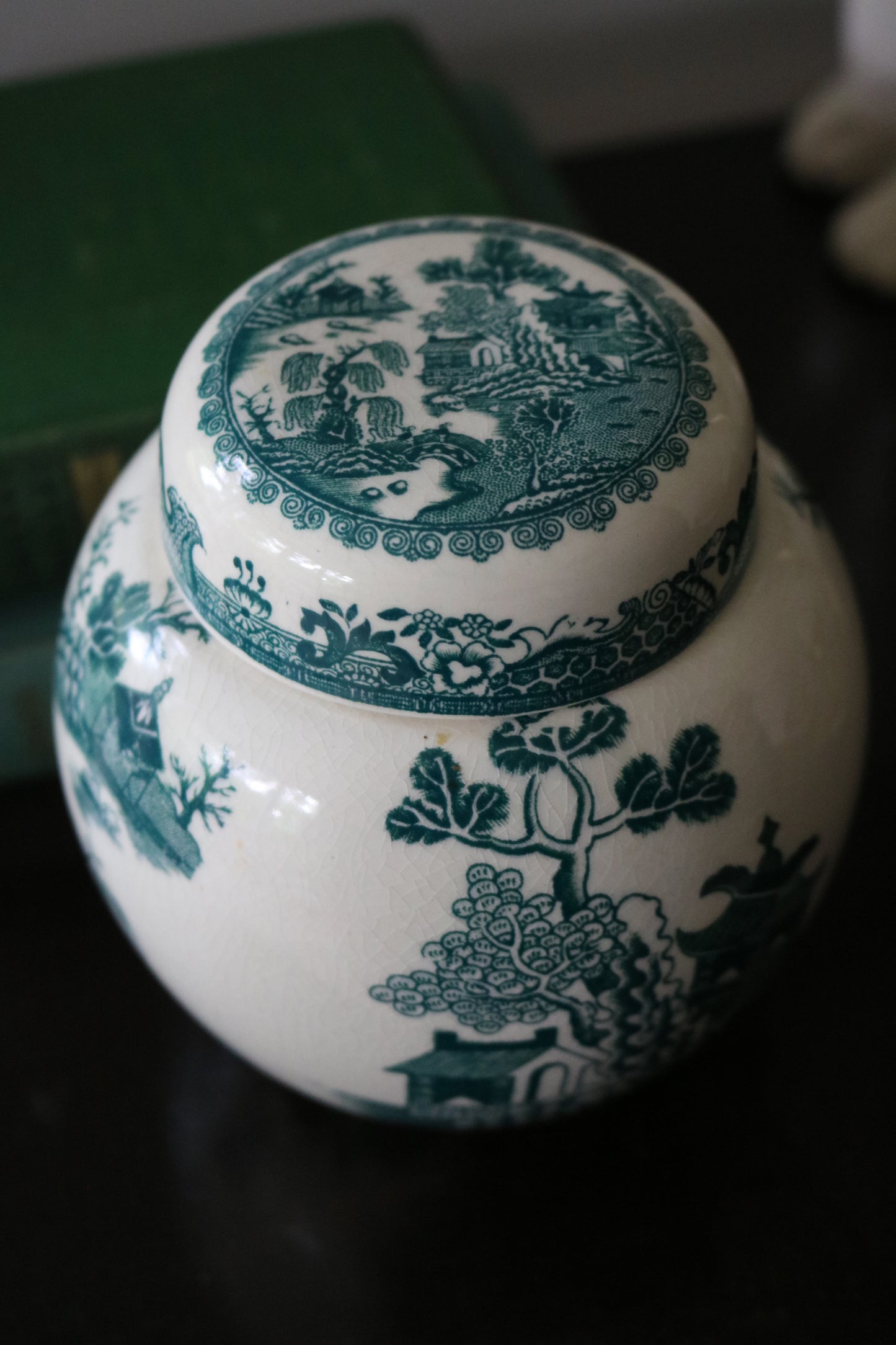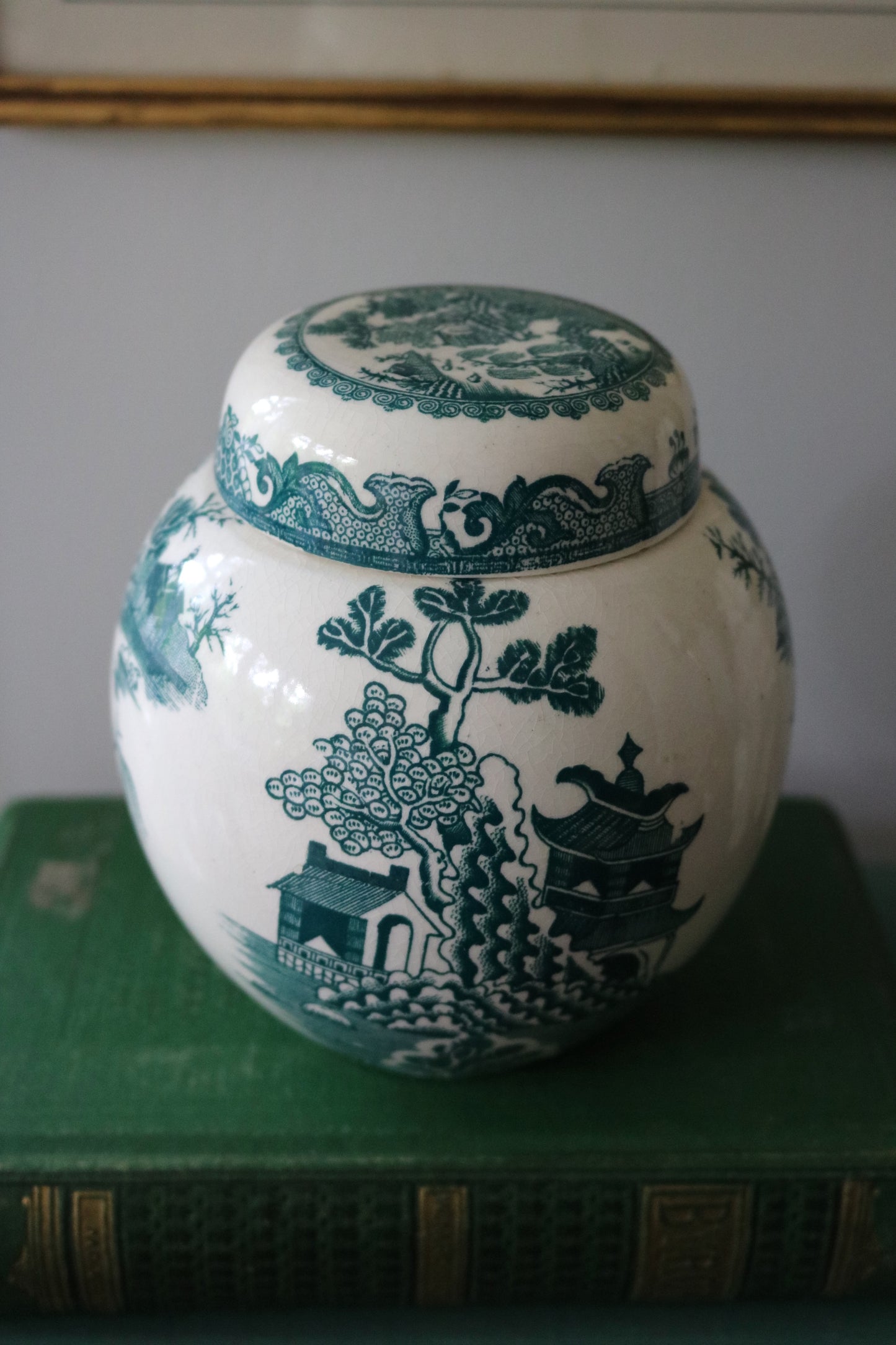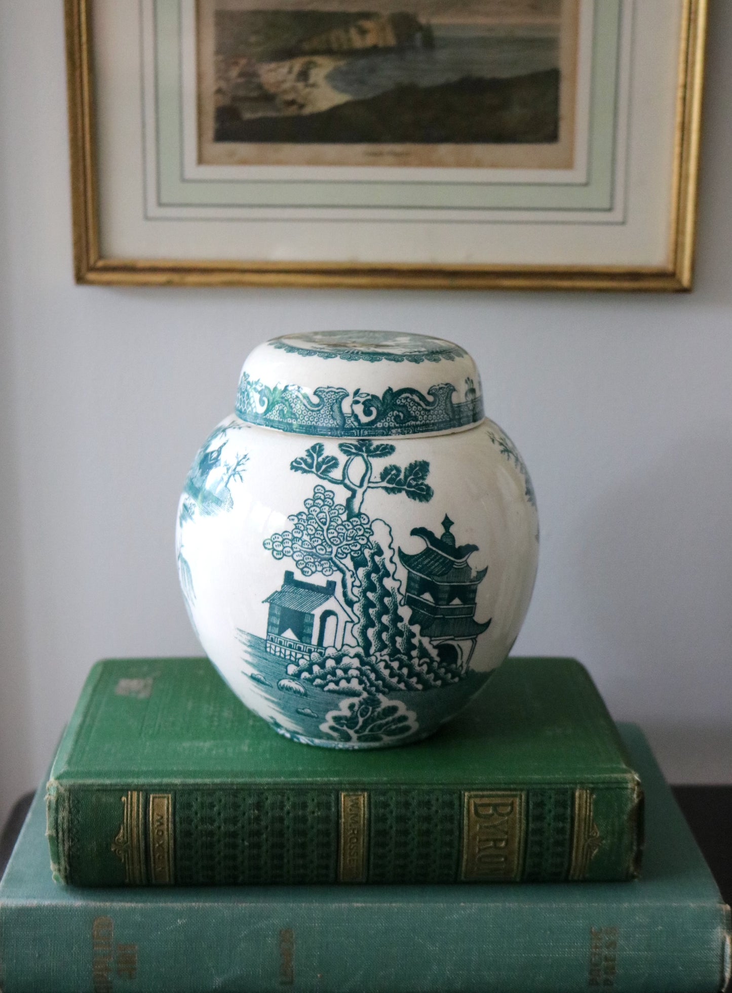 Here is a beautiful antique Mason's willow turquoise blue transferware ironstone ginger jar/tea caddy with original lid intact. Made for Twinings Ltd. in England.