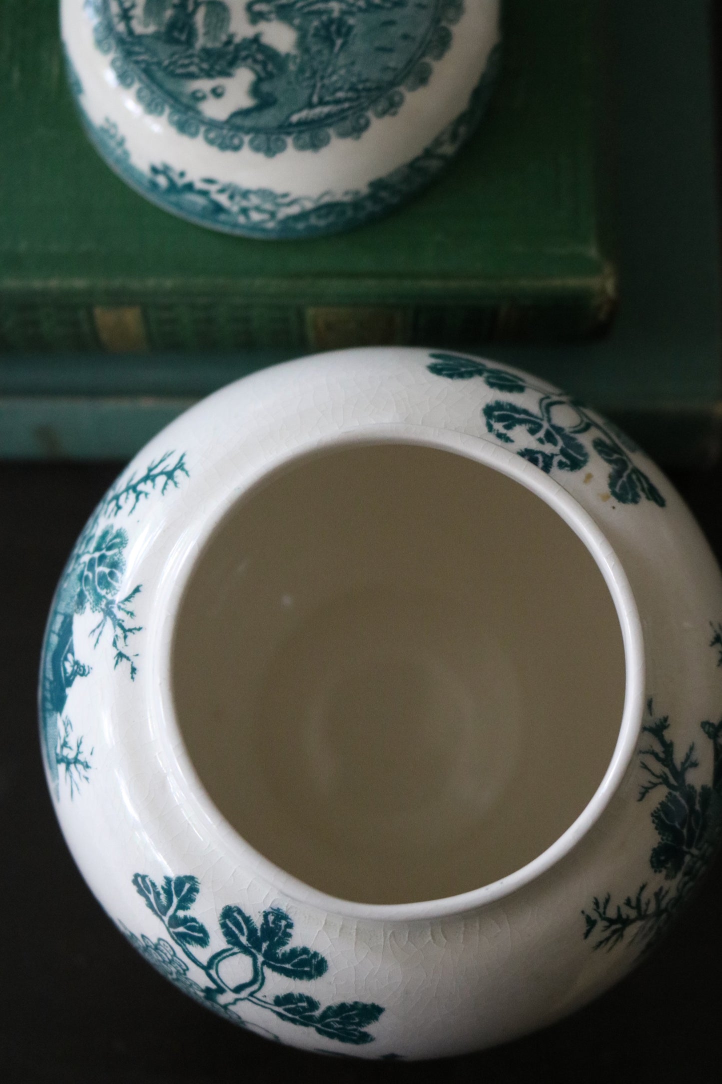Mason's turquoise transferware ginger jar/tea caddy with lid - made for Twinings Ltd.