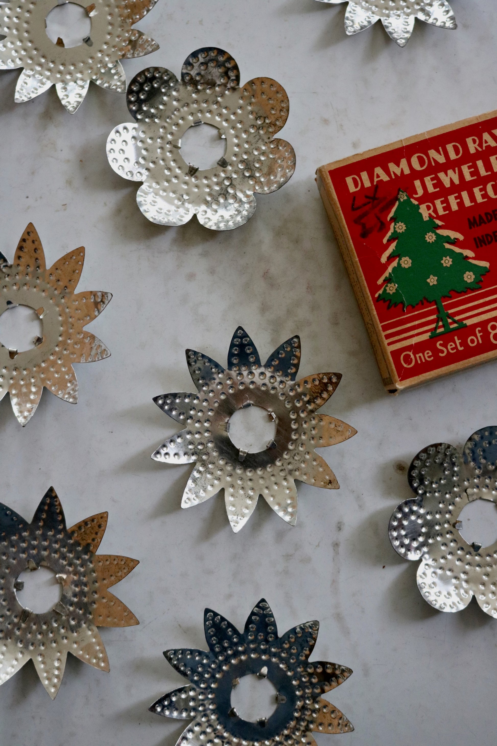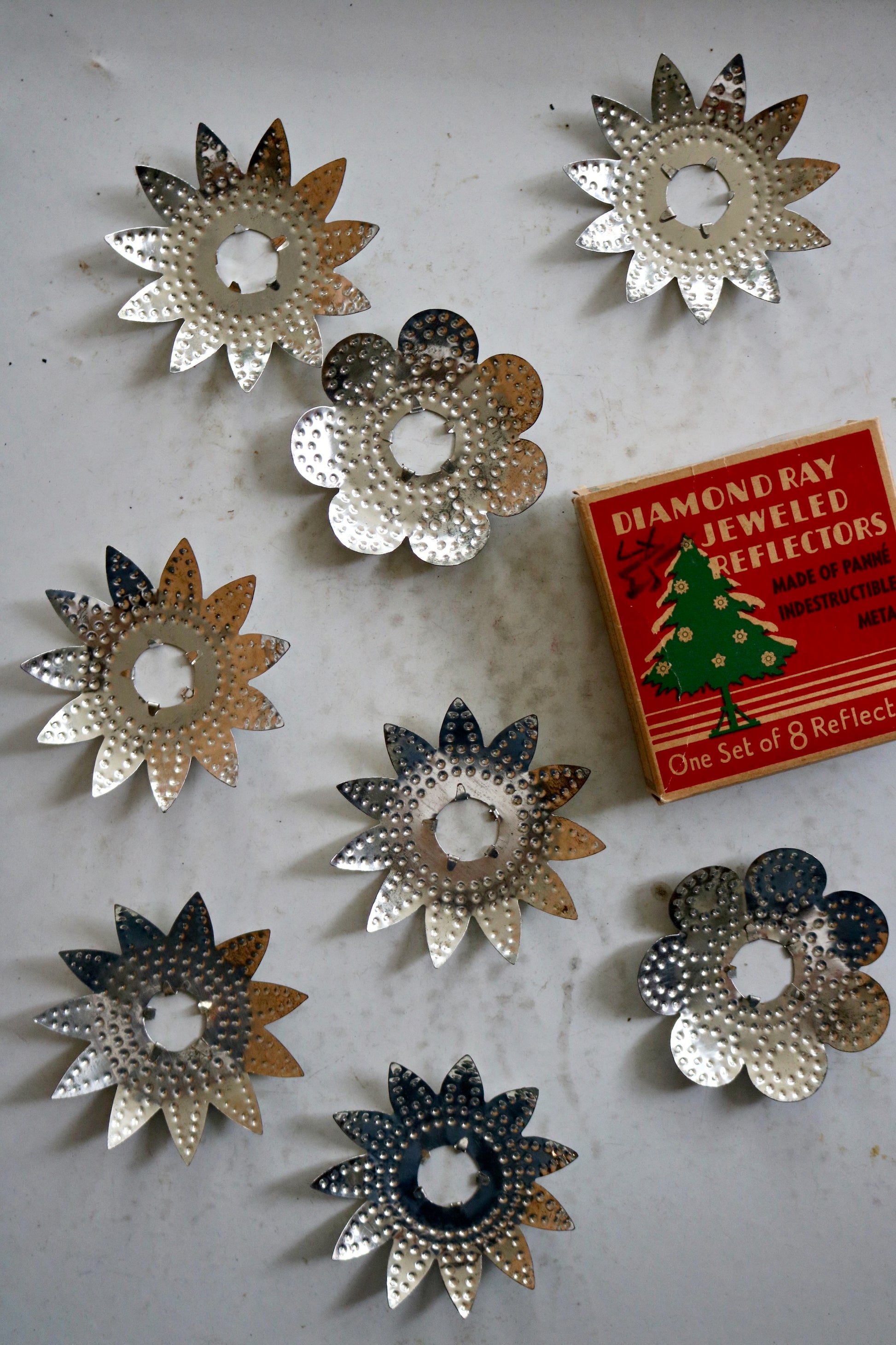 vintage punched metal Diamond Ray Christmas tree light reflectors