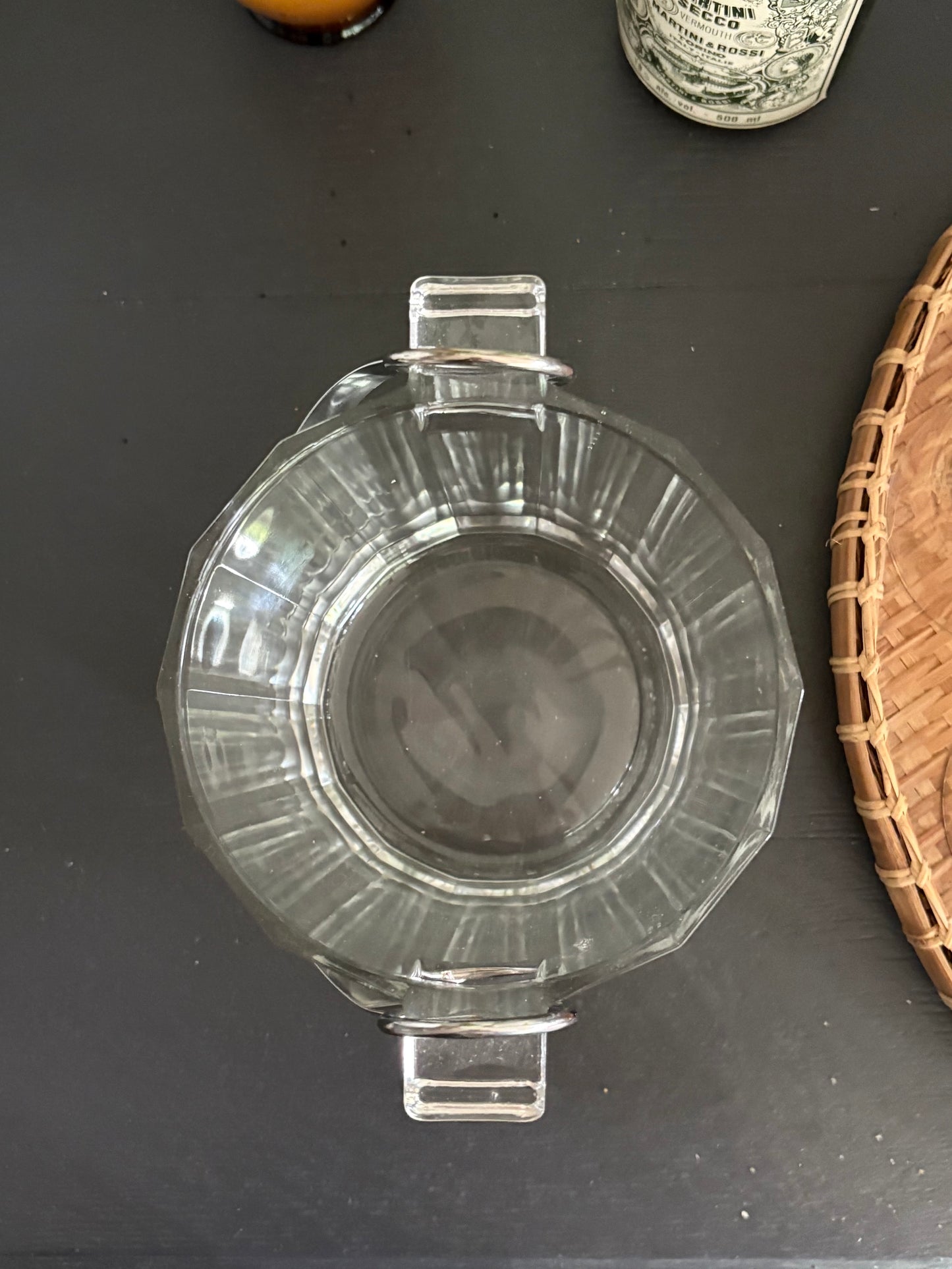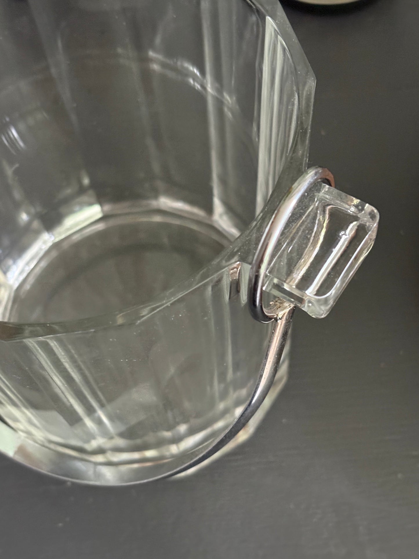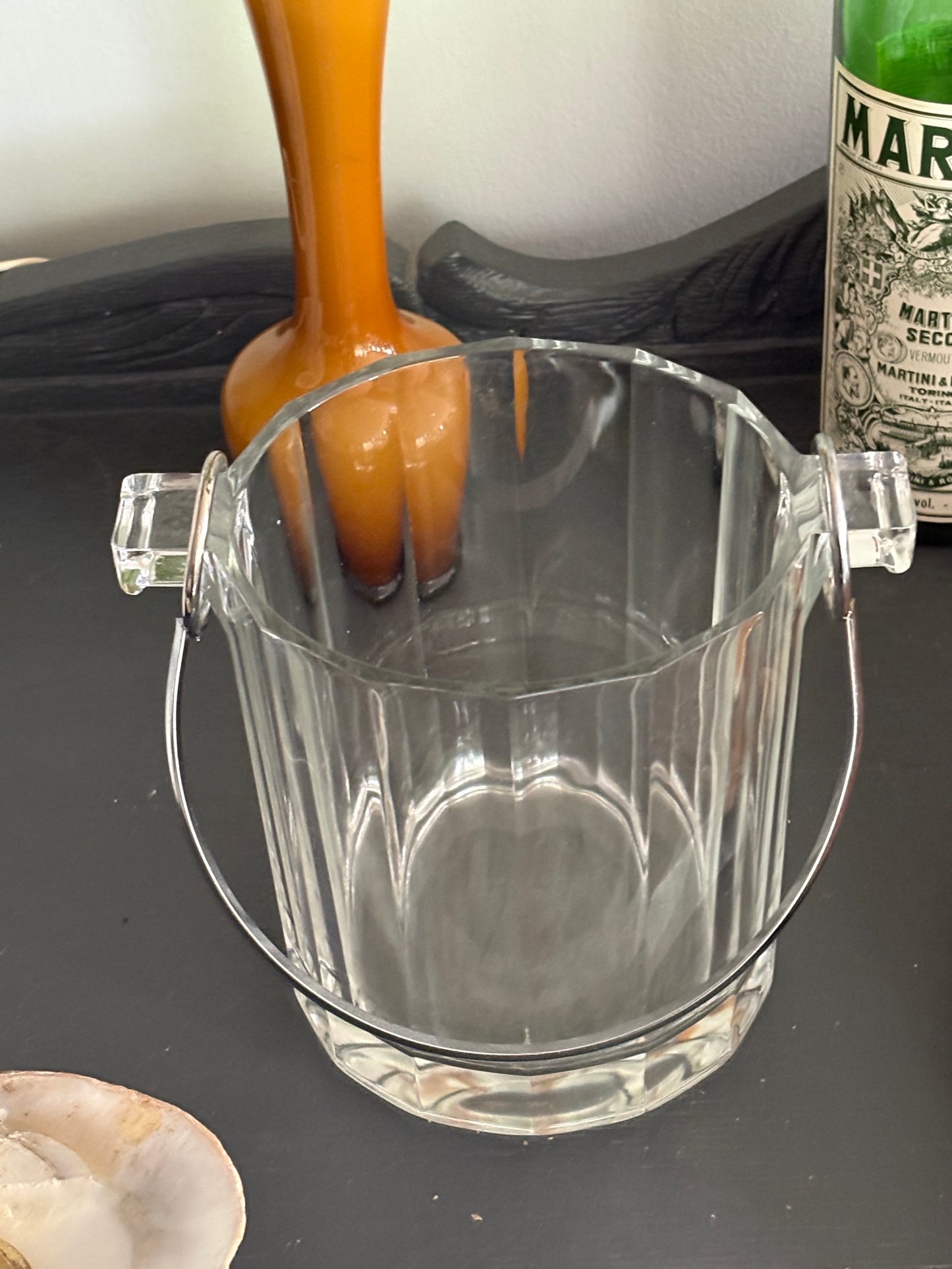 vintage Italian crystal glass ice bucket with stainless steel handle