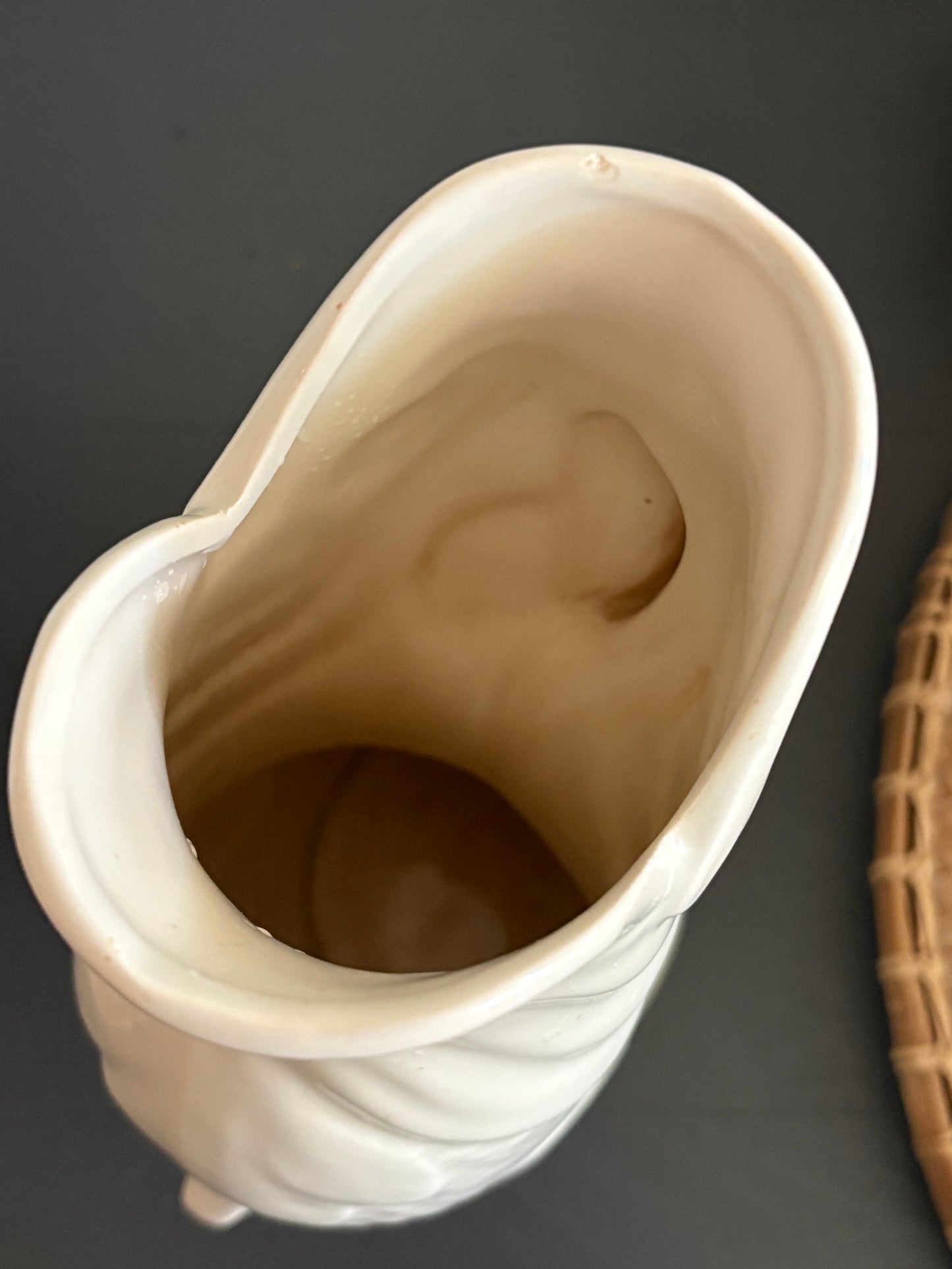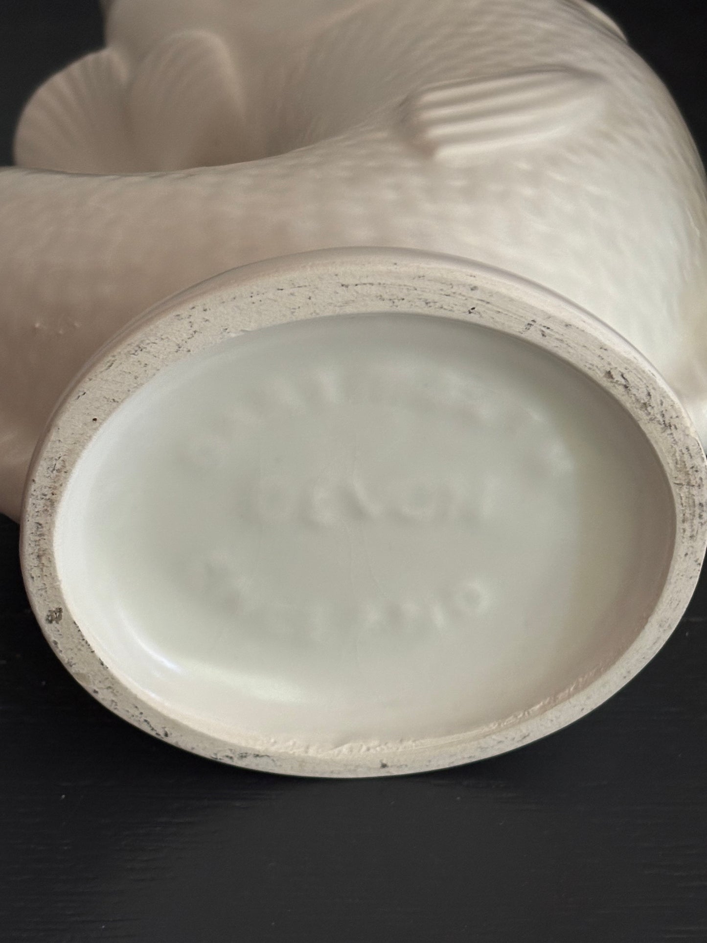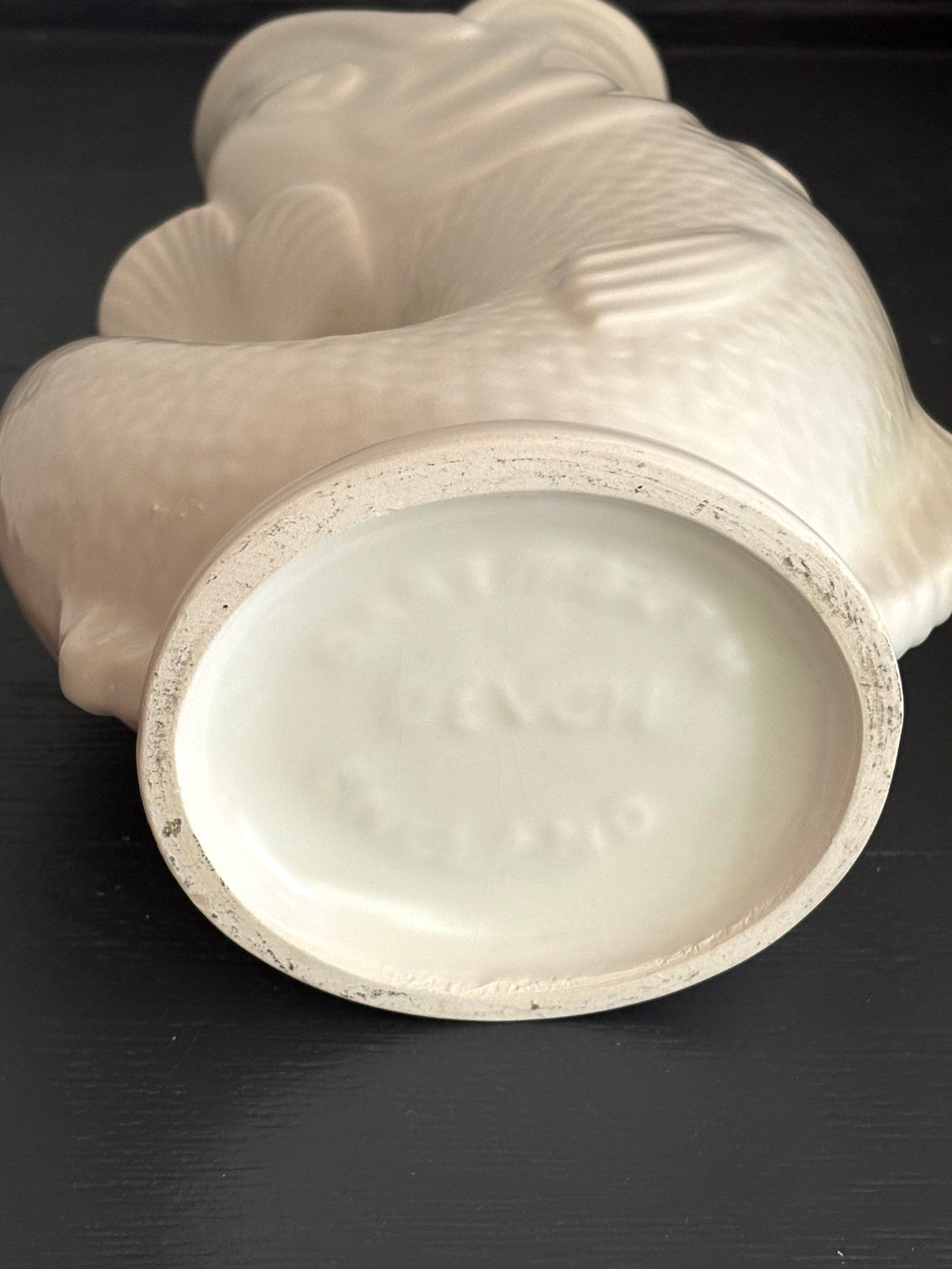 A fabulous vintage English Dartmouth Fish Gurgle Jug in cream white colour. Would make a great vase or display piece. This piece dates to the 1940's/1950's.