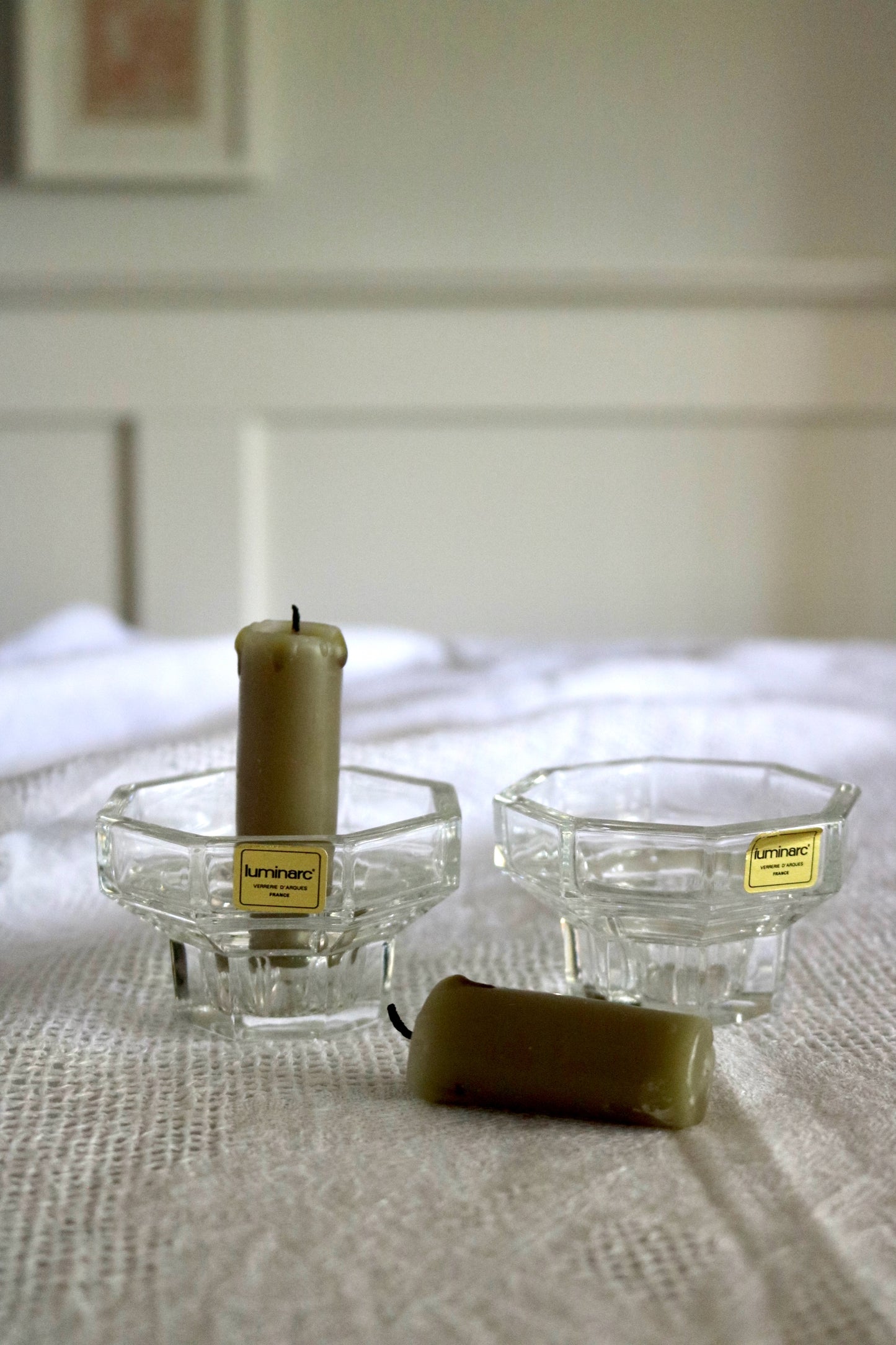 vintage French Luminarc Octime glass candleholders, set of 2