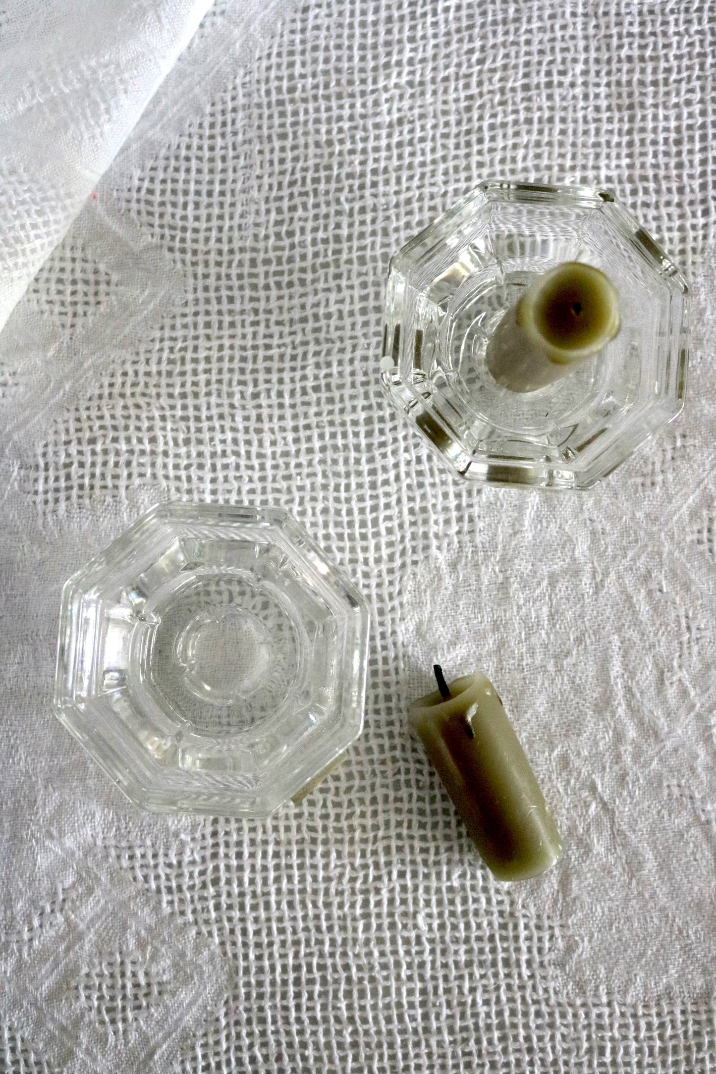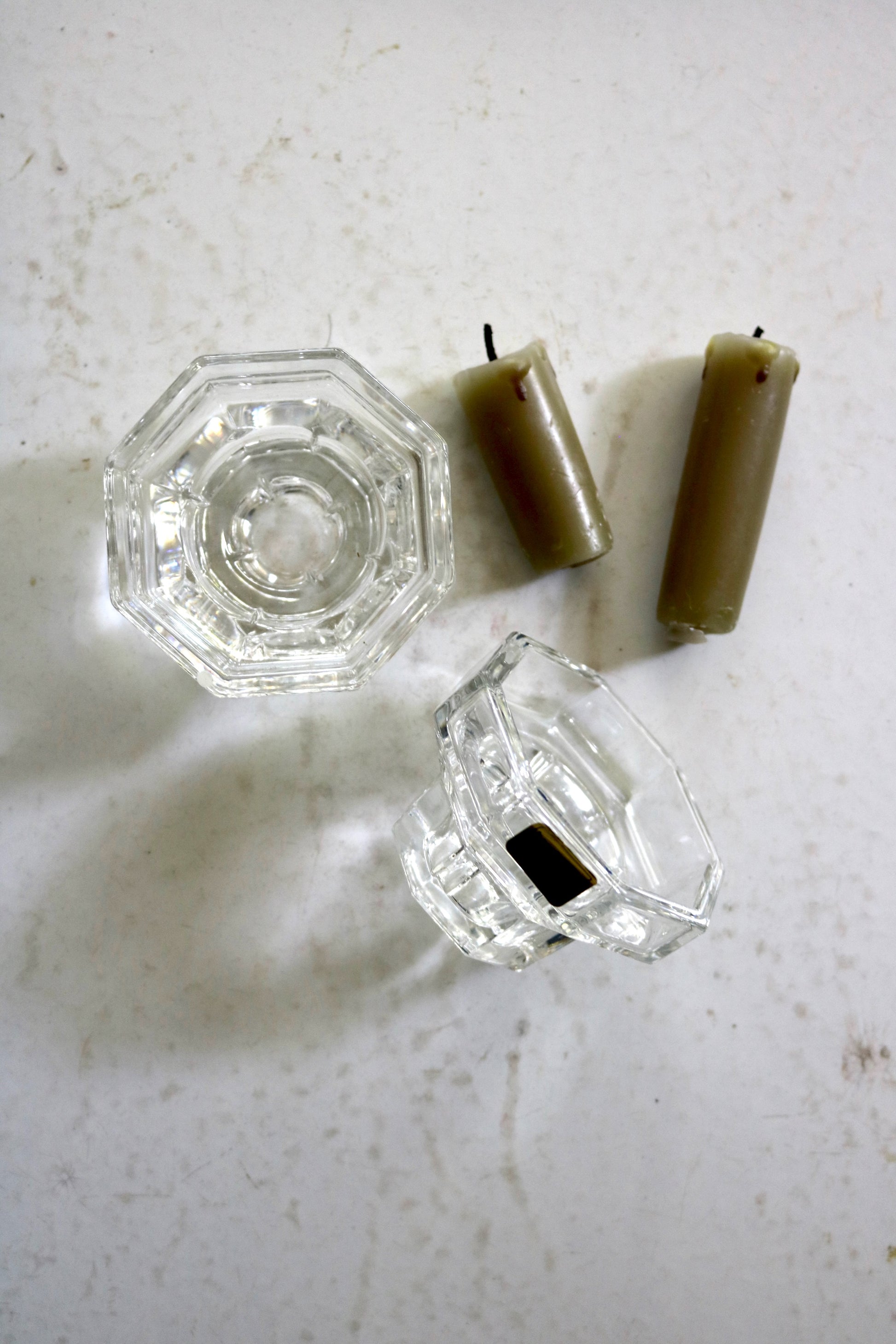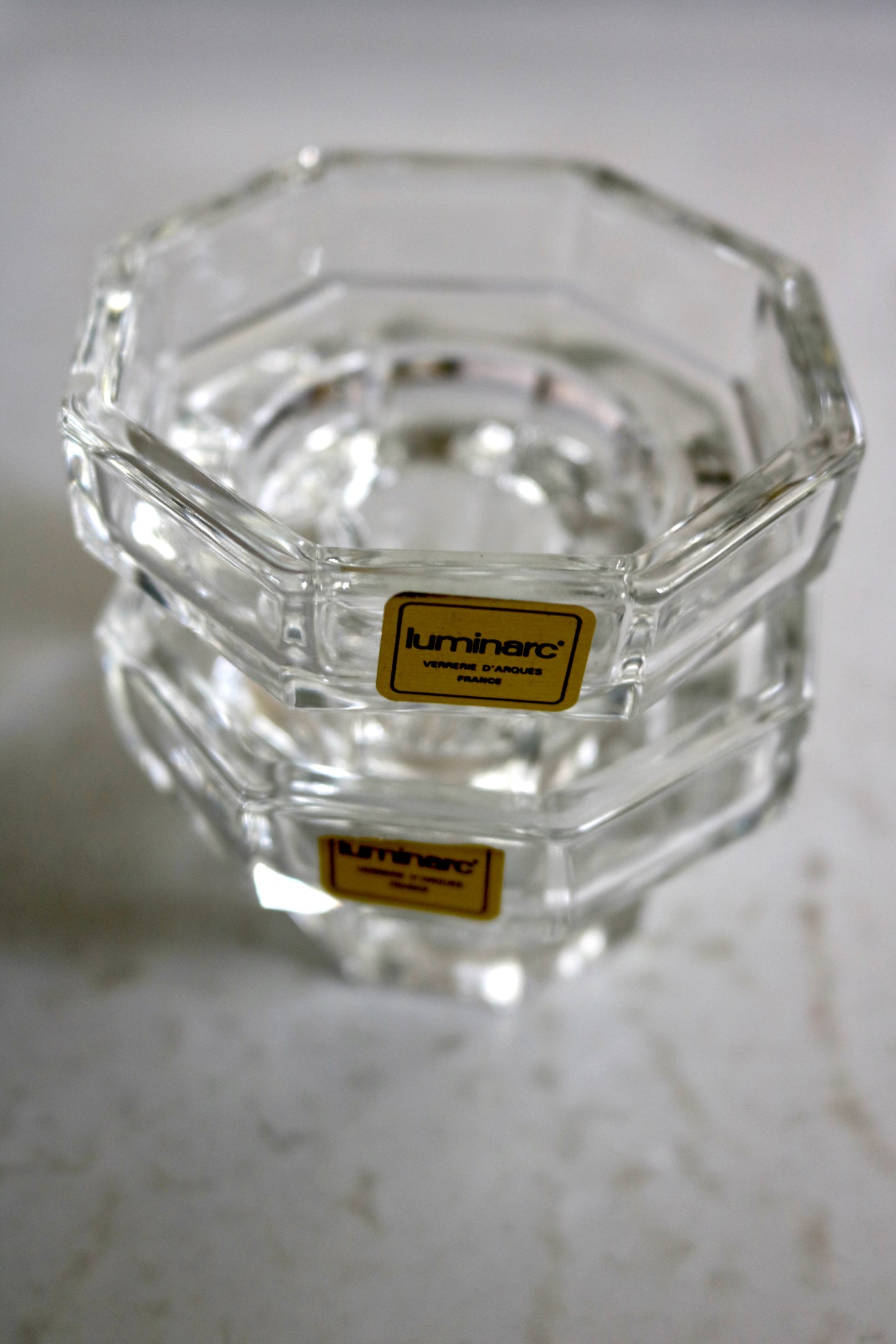 Vintage French Luminarc Octime glass candleholders. Made in France. Pretty glass octagon shape candle holders for your table. Set of two.