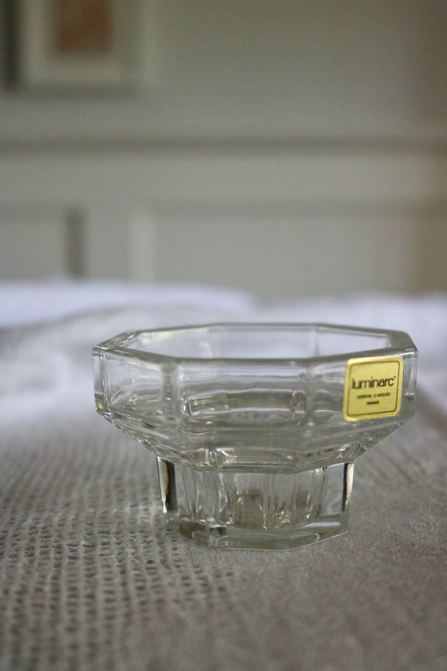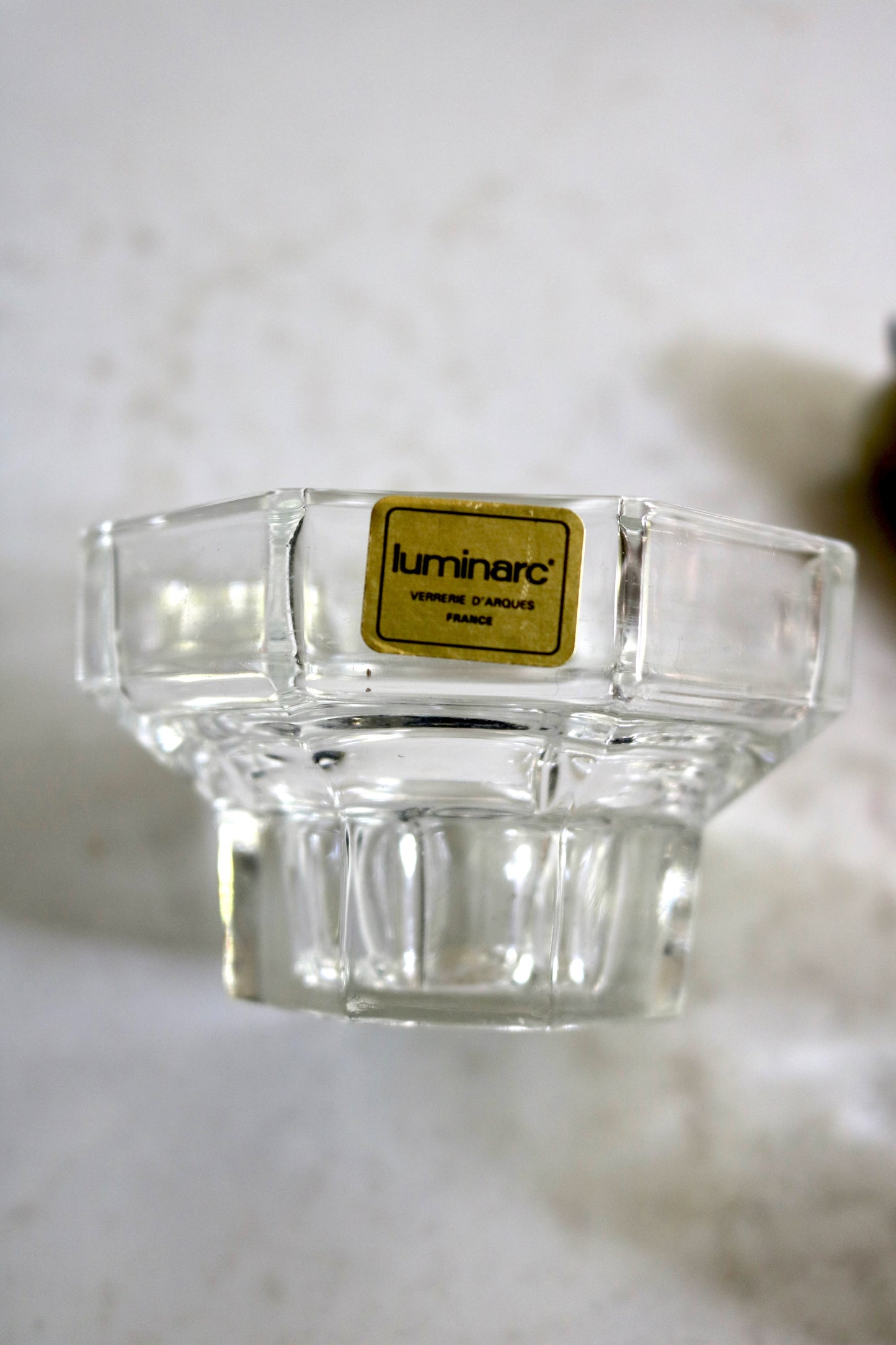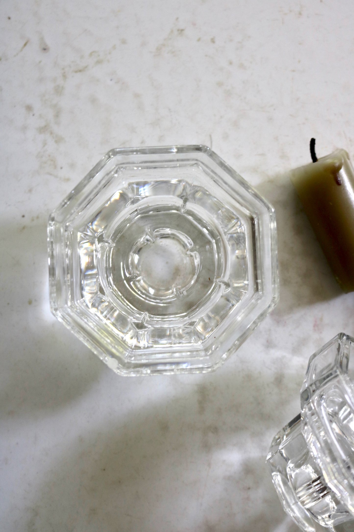 Vintage French Luminarc Octime glass candleholders. Made in France. Pretty glass octagon shape candle holders for your table. Set of two.