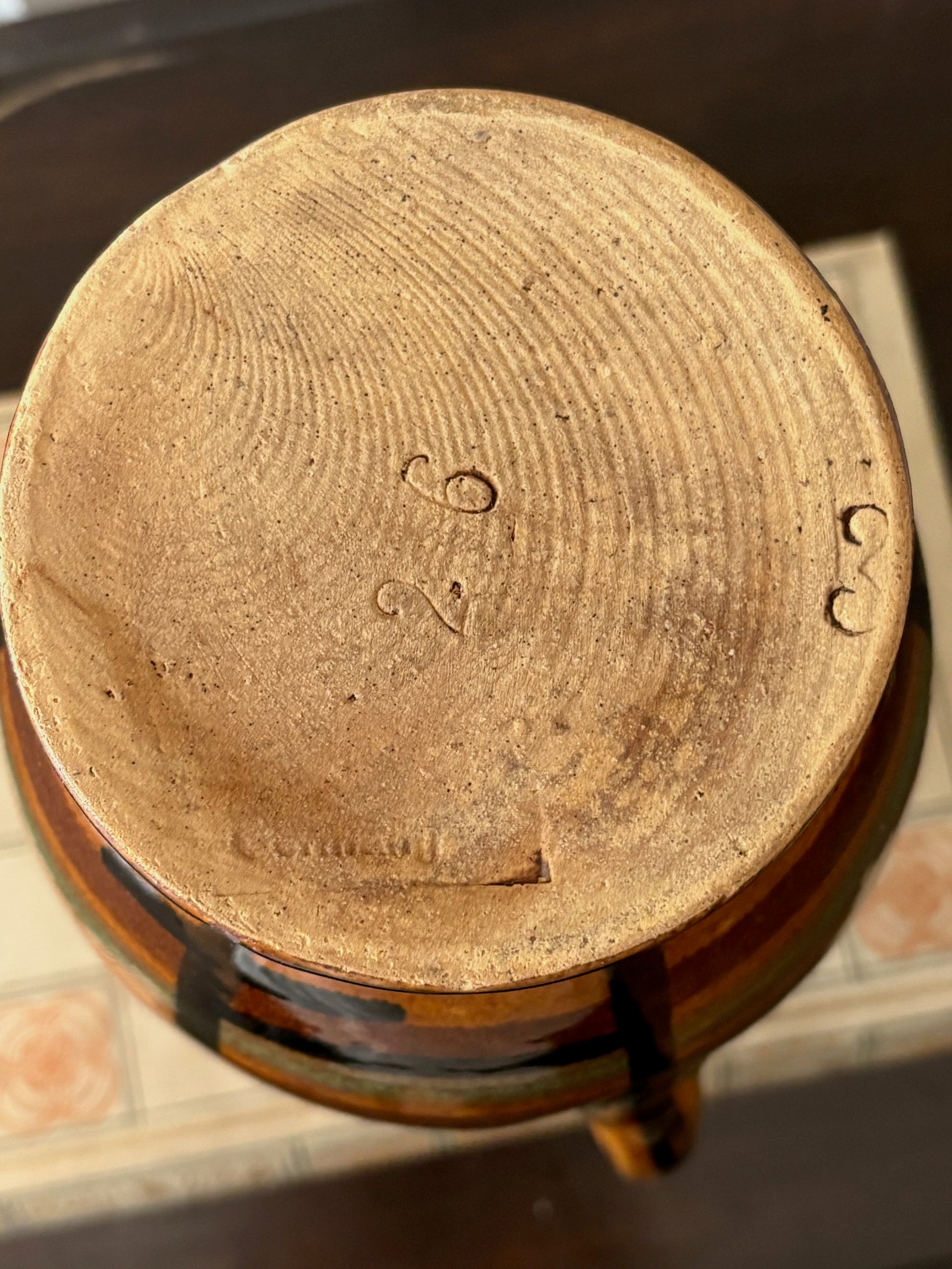 In lovely vintage condition, watertight. A few small spots with glaze loss on top rim.
