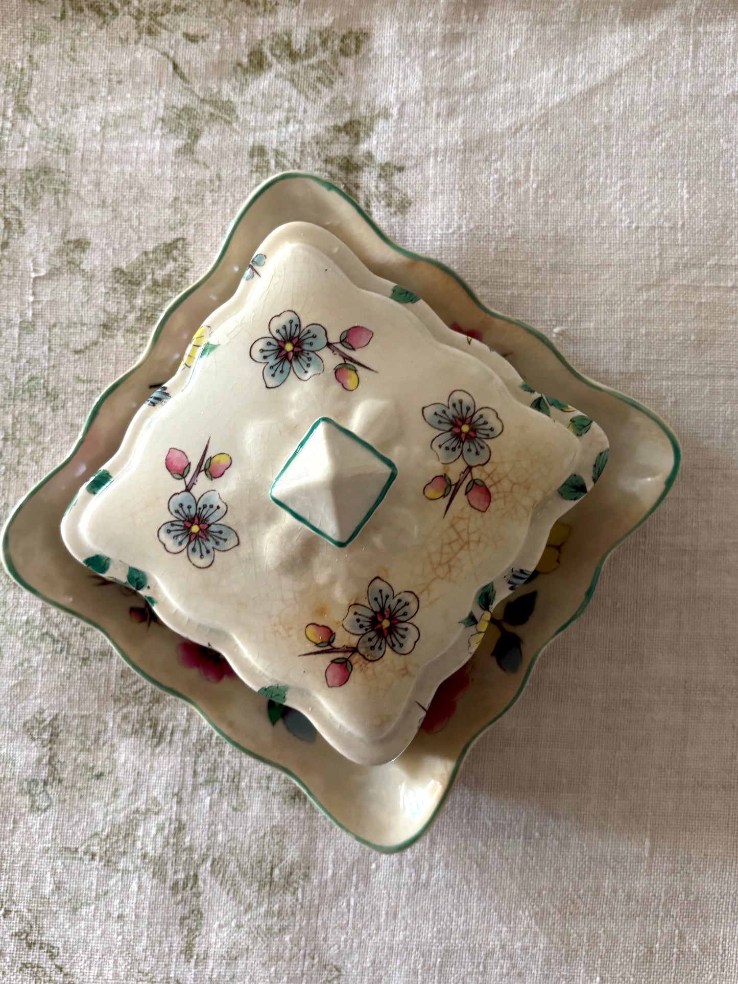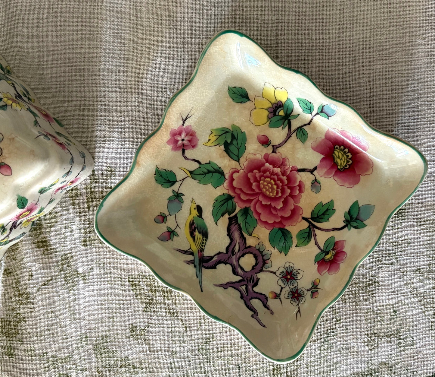 antique English lidded dish "Old Foley" by James Kent Ltd.