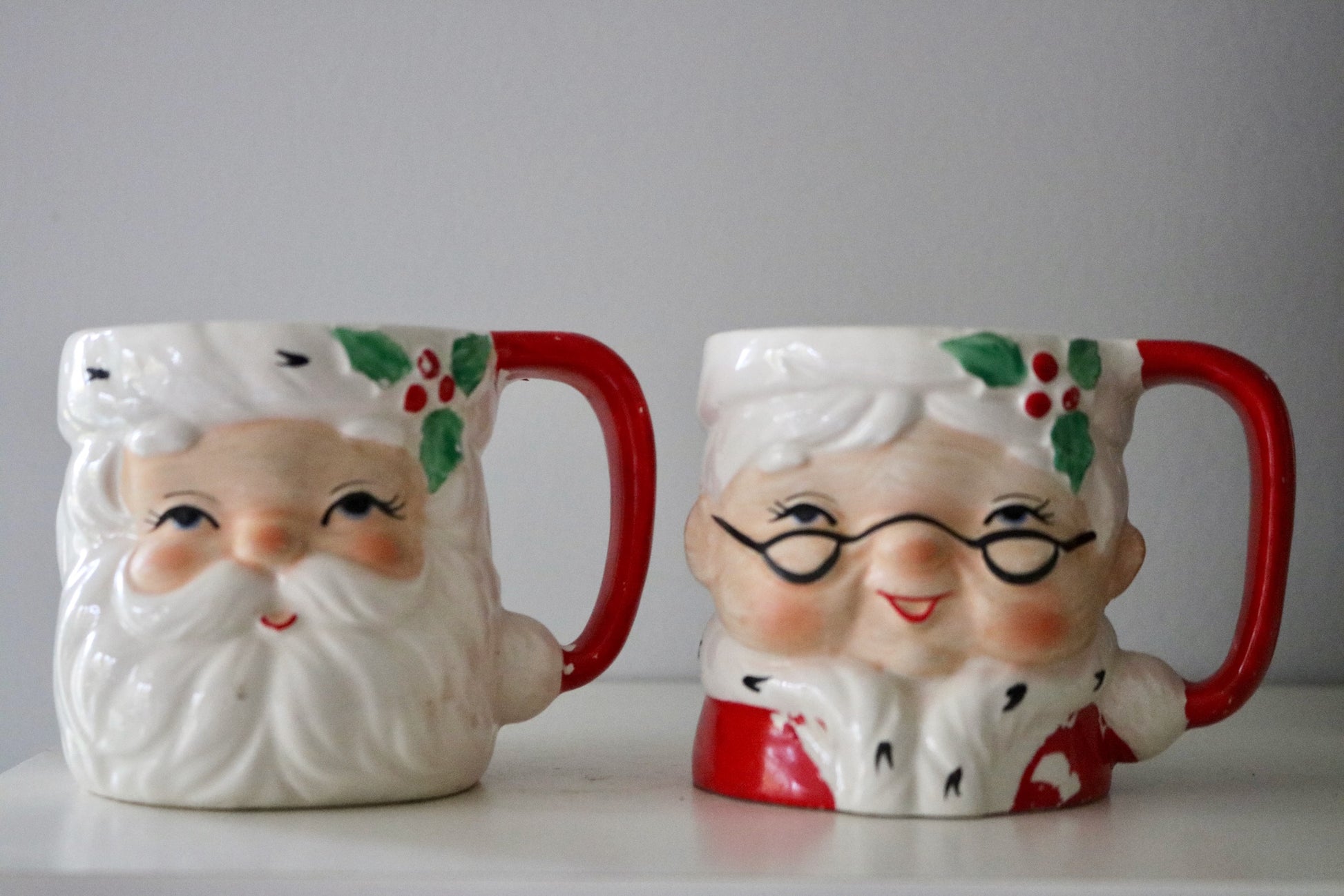 It's rare to find this couple hanging out together. A very sweet Santa and Mrs. Claus mug set.