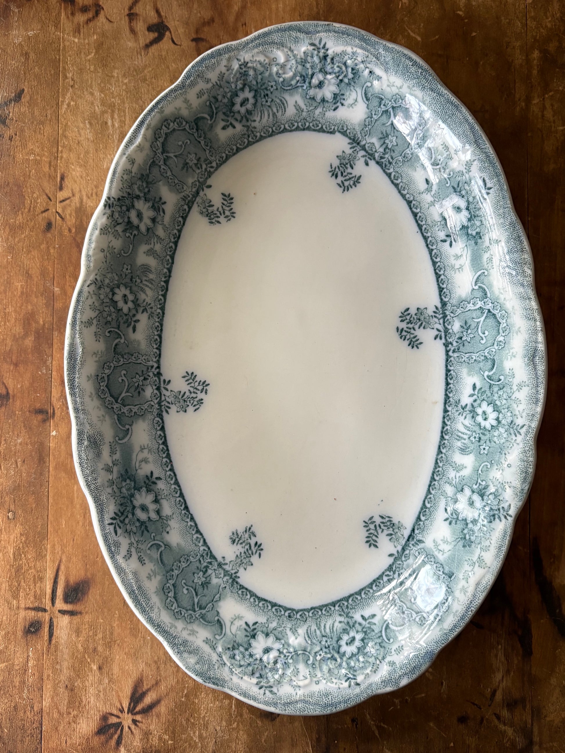 vintage large teal blue transferware platter 'Clive' by Stanley Pottery England