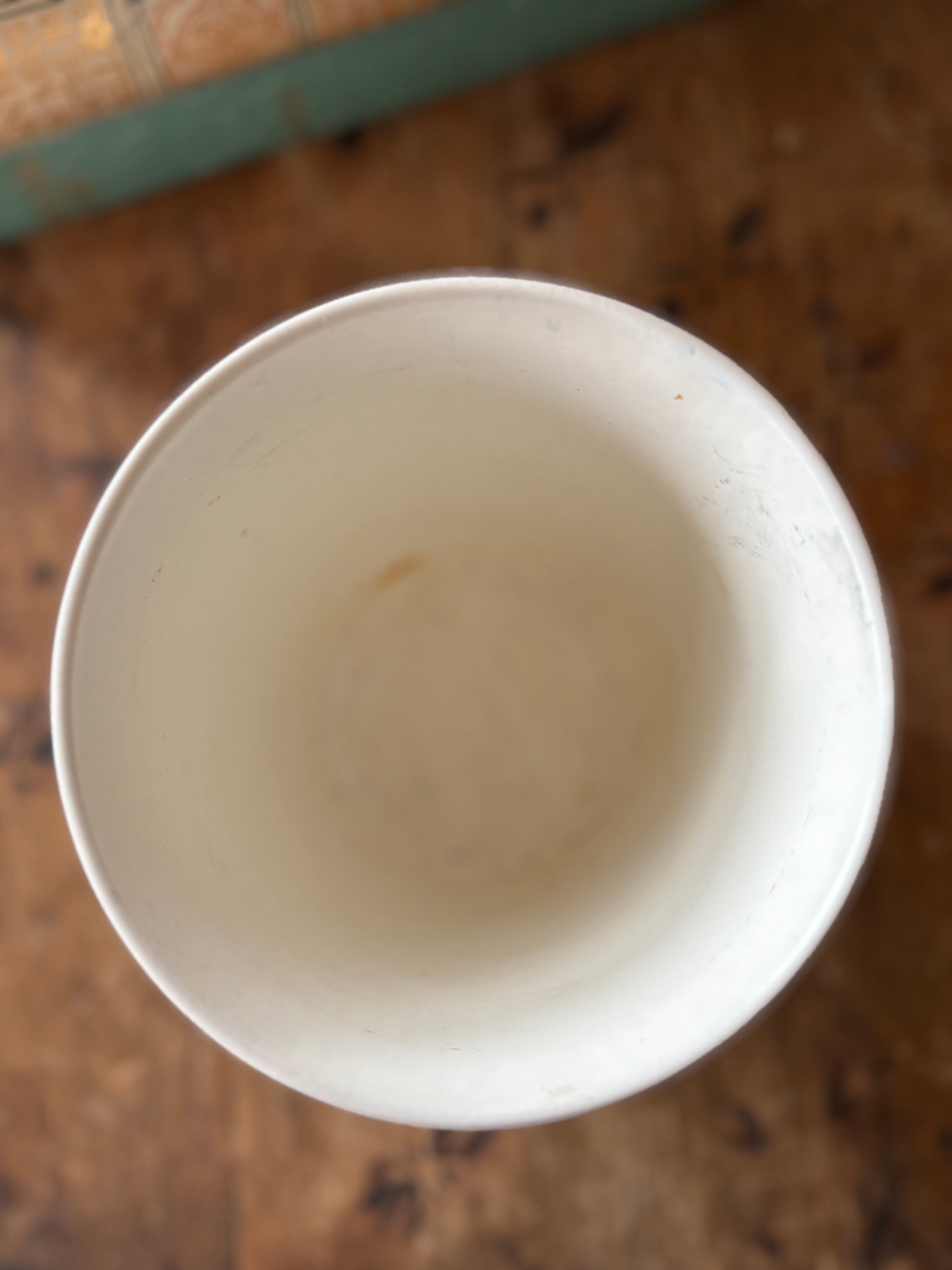 As found, in lovely vintage condition with some wear to interior from use. Tiny chip on footed base. See last image.
